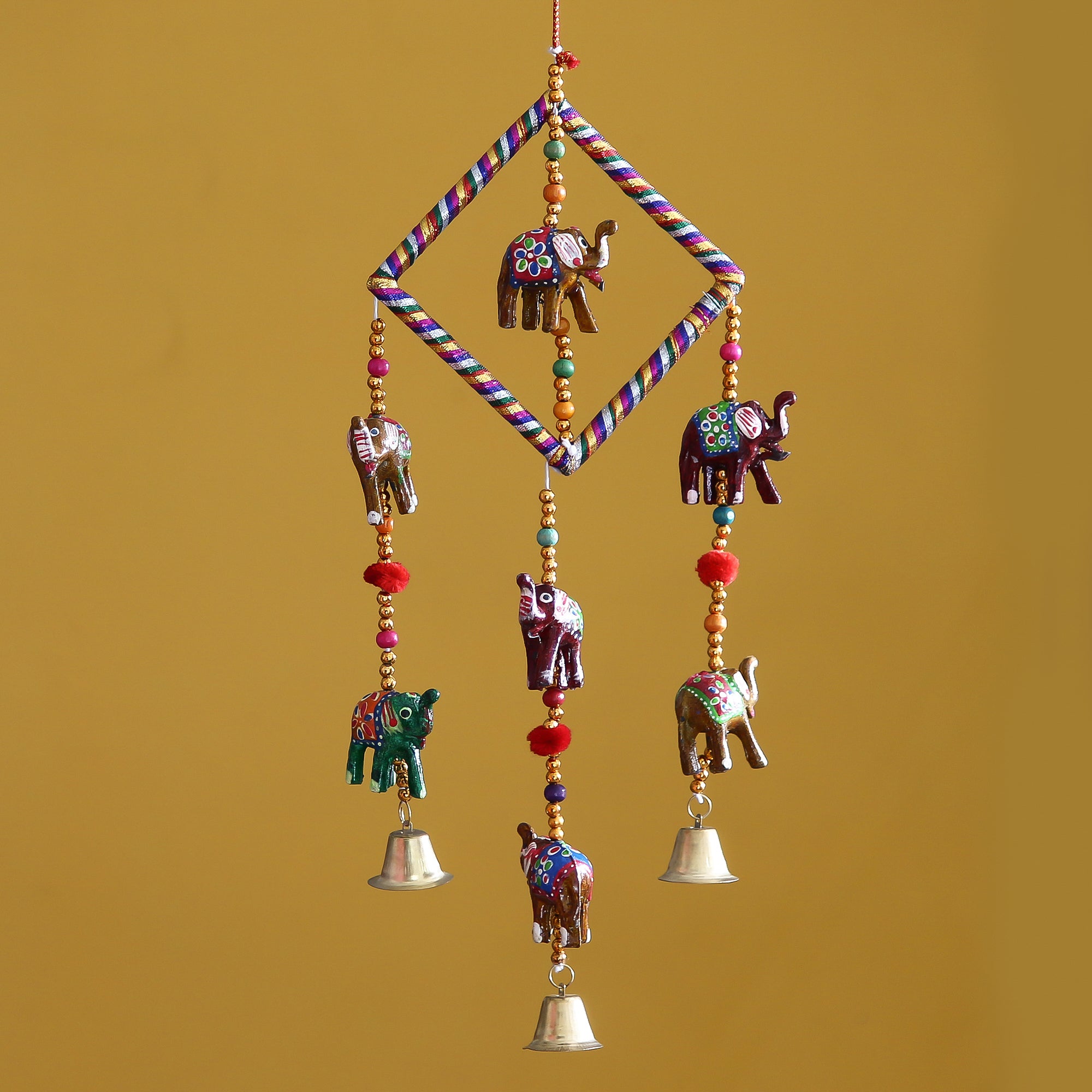 Package Content - One Handcrafted Decorative Elephant Wall/Door/Window Hanging Bells