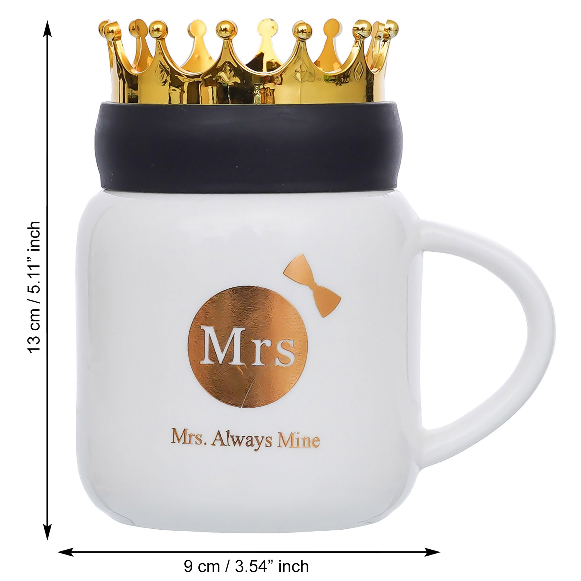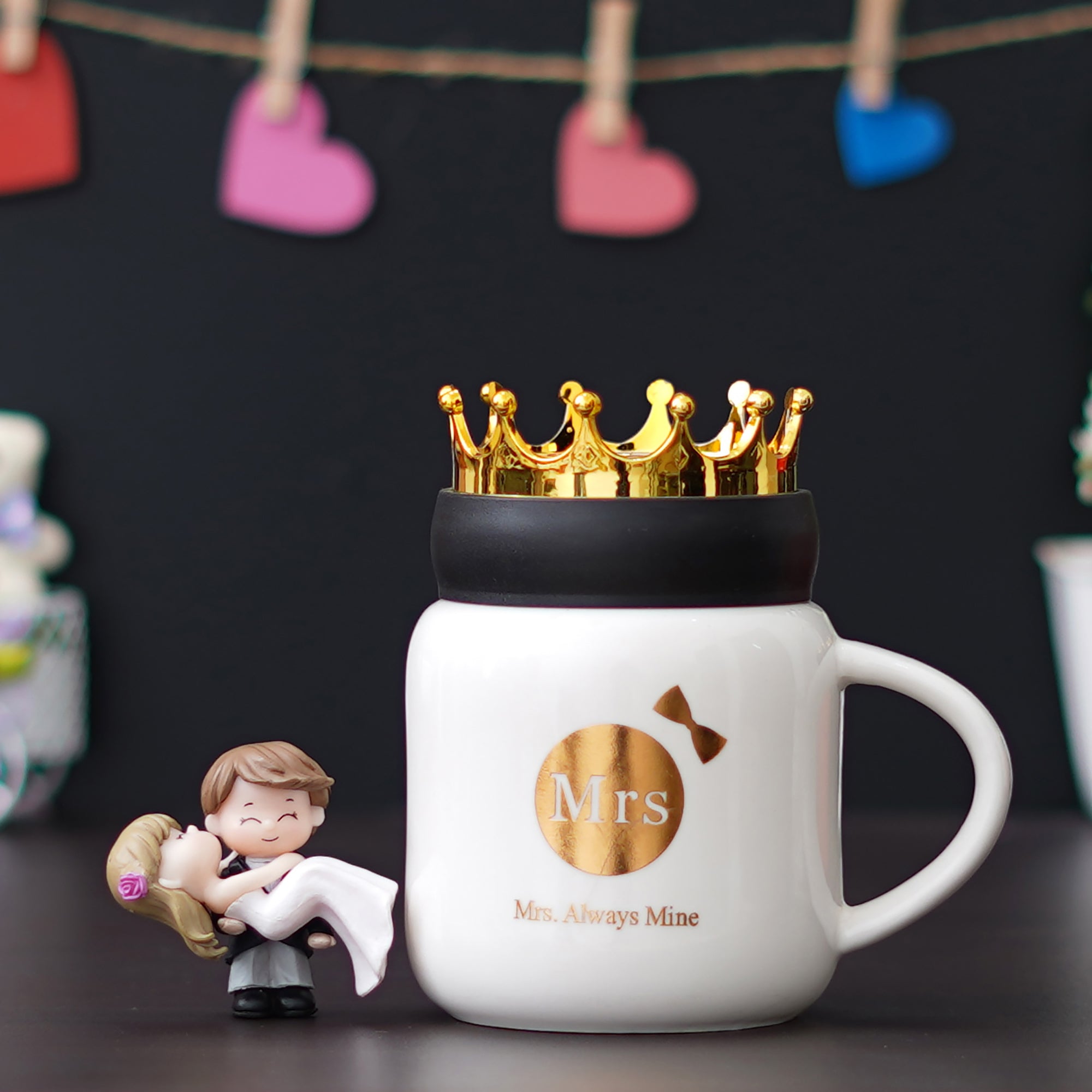 Wish to make your loved one feel on top of the world? This combo consists of One "Mrs. Always Mine" Printed Valentine Ceramic White Mug with Black Lid and Golden Crown, One Bride Kissing Groom Romantic Polyresin Decorative Showpiece. At eCraftIndia, you can come across various Valentine's gift set combos that would for sure make your partner feel more loved & connected to you. These gift sets have various variations that you can select according to your occasion or celebration. Further, these are made with much thought by our skilled artists just so you can make your loved one feel special always!