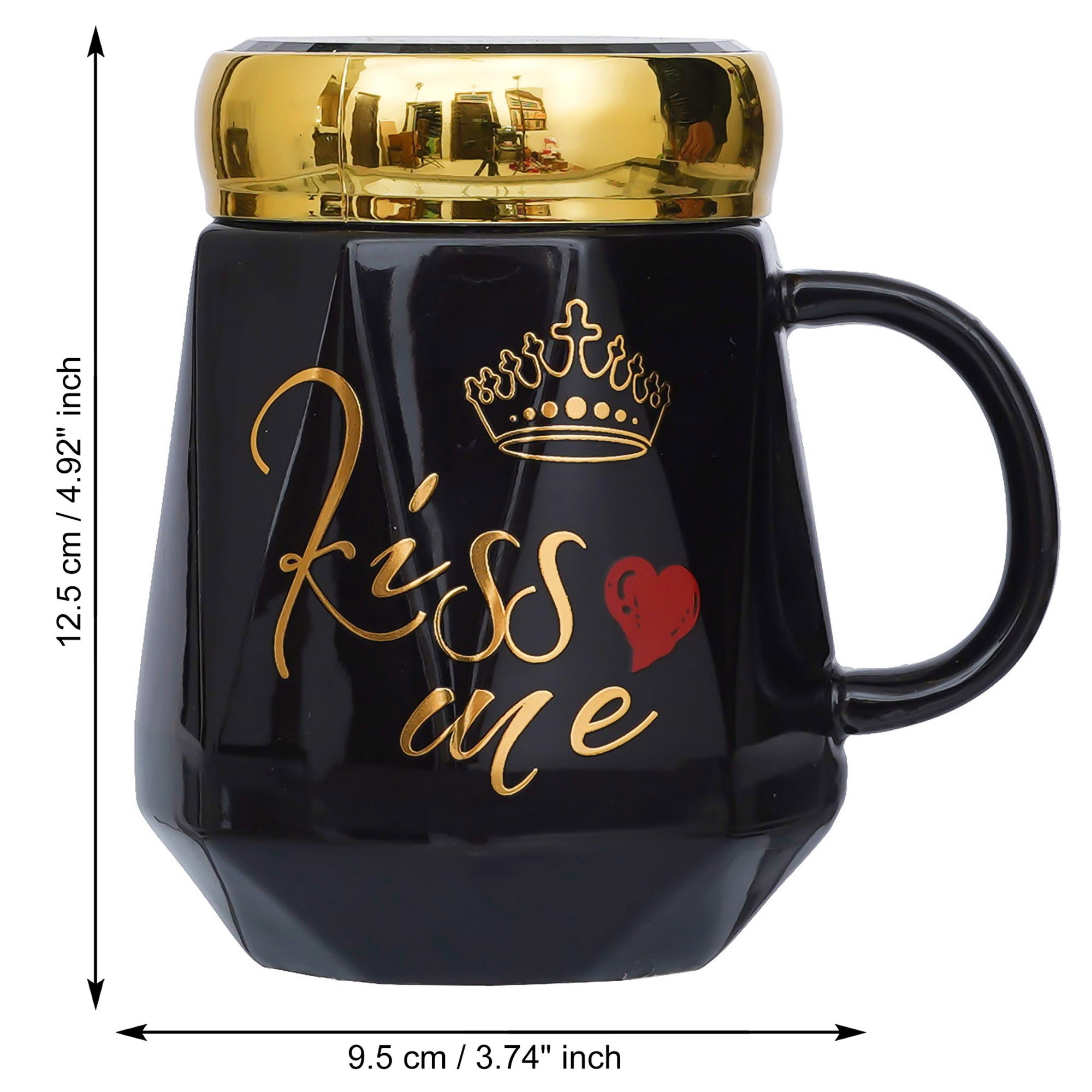 Wish to make your loved one feel on top of the world? This combo consists of One "Kiss Me" Printed Valentine Ceramic Black Mug with Golden Lid, One Love Golden Red Rose Table Decor Valentine Gift Set Showpiece. At eCraftIndia, you can come across various Valentine's gift set combos that would for sure make your partner feel more loved & connected to you. These gift sets have various variations that you can select according to your occasion or celebration. Further, these are made with much thought by our skilled artists just so you can make your loved one feel special always!