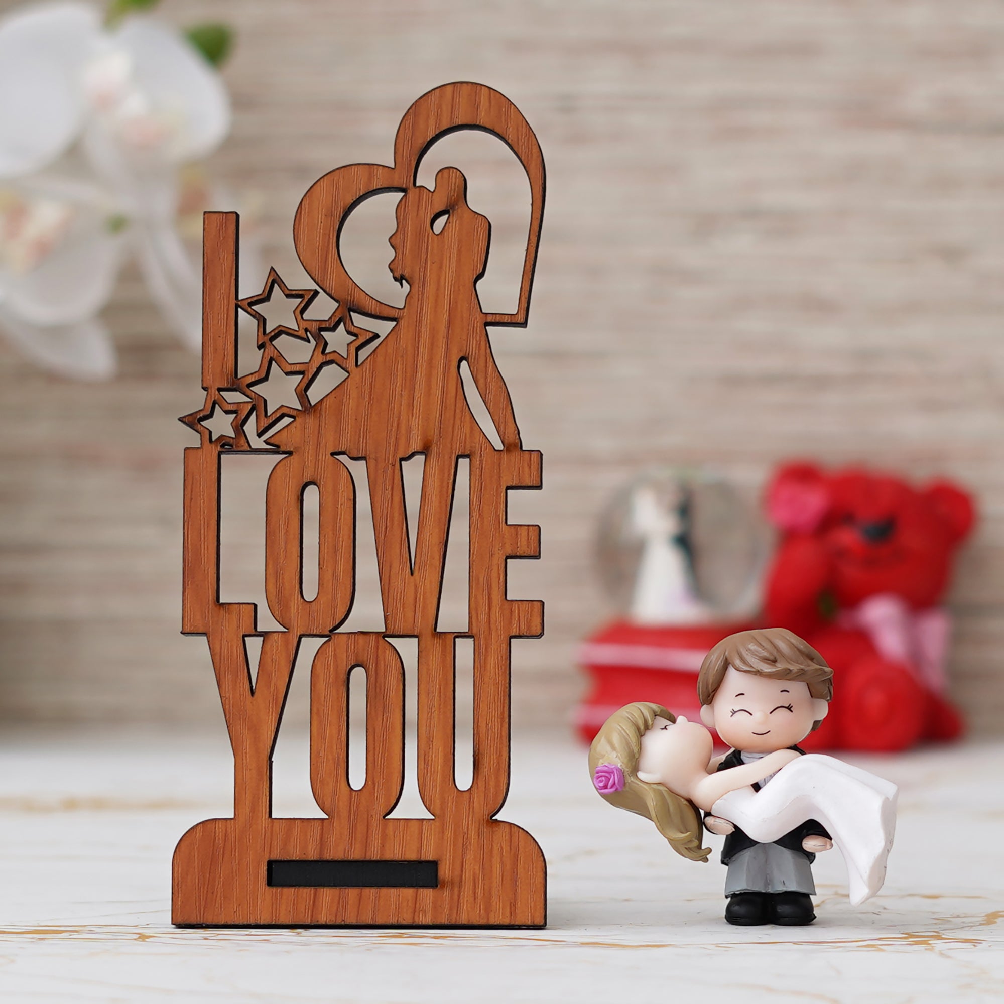 Wish to make your loved one feel on top of the world? This combo consists of One "Love You" Valentine Wooden Showpiece With Stand, One Bride Kissing Groom Romantic Polyresin Decorative Showpiece. At eCraftIndia, you can come across various Valentine's gift set combos that would for sure make your partner feel more loved & connected to you. These gift sets have various variations that you can select according to your occasion or celebration. Further, these are made with much thought by our skilled artists just so you can make your loved one feel special always!