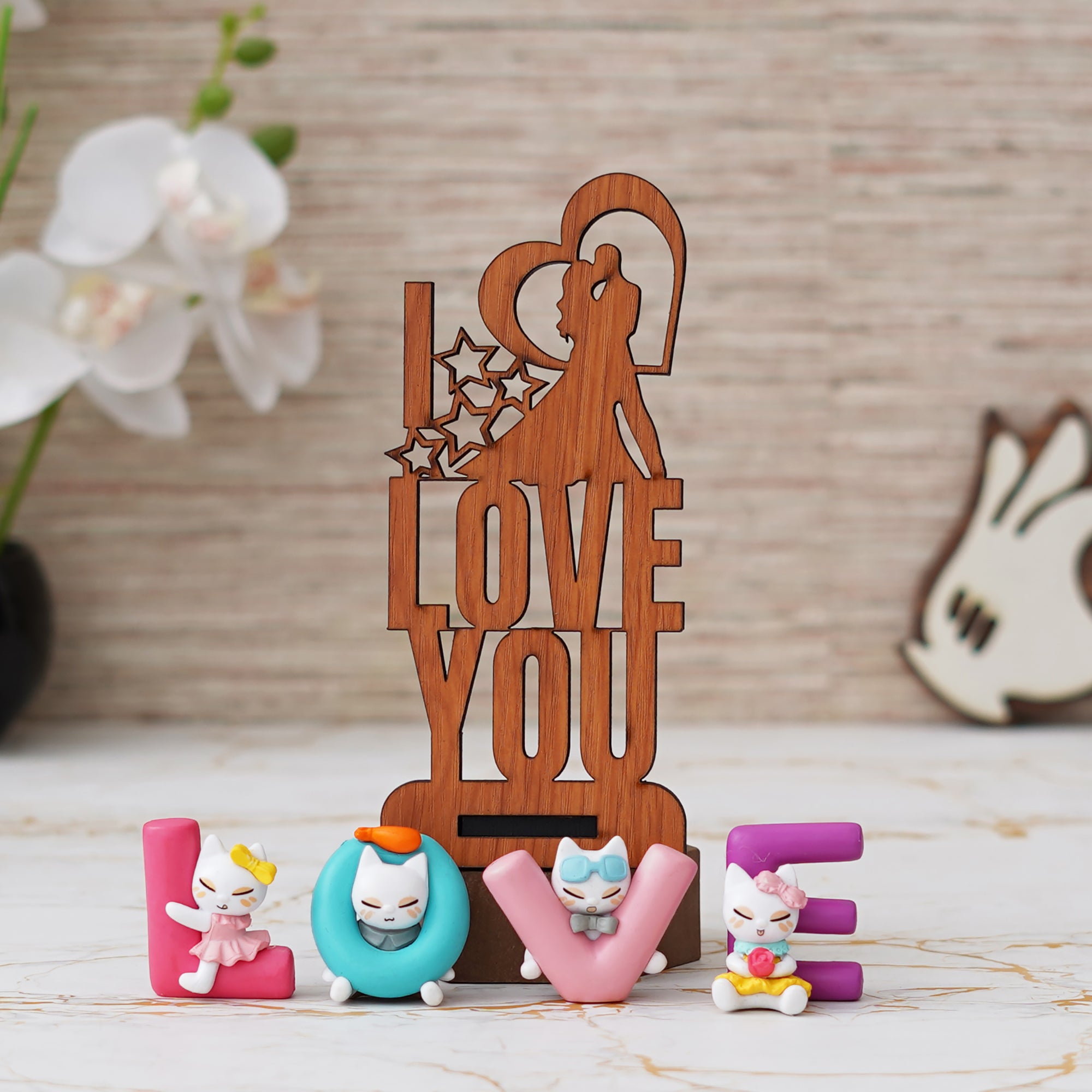 Wish to make your loved one feel on top of the world? This combo consists of One "Love You" Valentine Wooden Showpiece With Stand, One "Love" Animated Characters Valentine Multicolor Polyresin Showpiece. At eCraftIndia, you can come across various Valentine's gift set combos that would for sure make your partner feel more loved & connected to you. These gift sets have various variations that you can select according to your occasion or celebration. Further, these are made with much thought by our skilled artists just so you can make your loved one feel special always!
