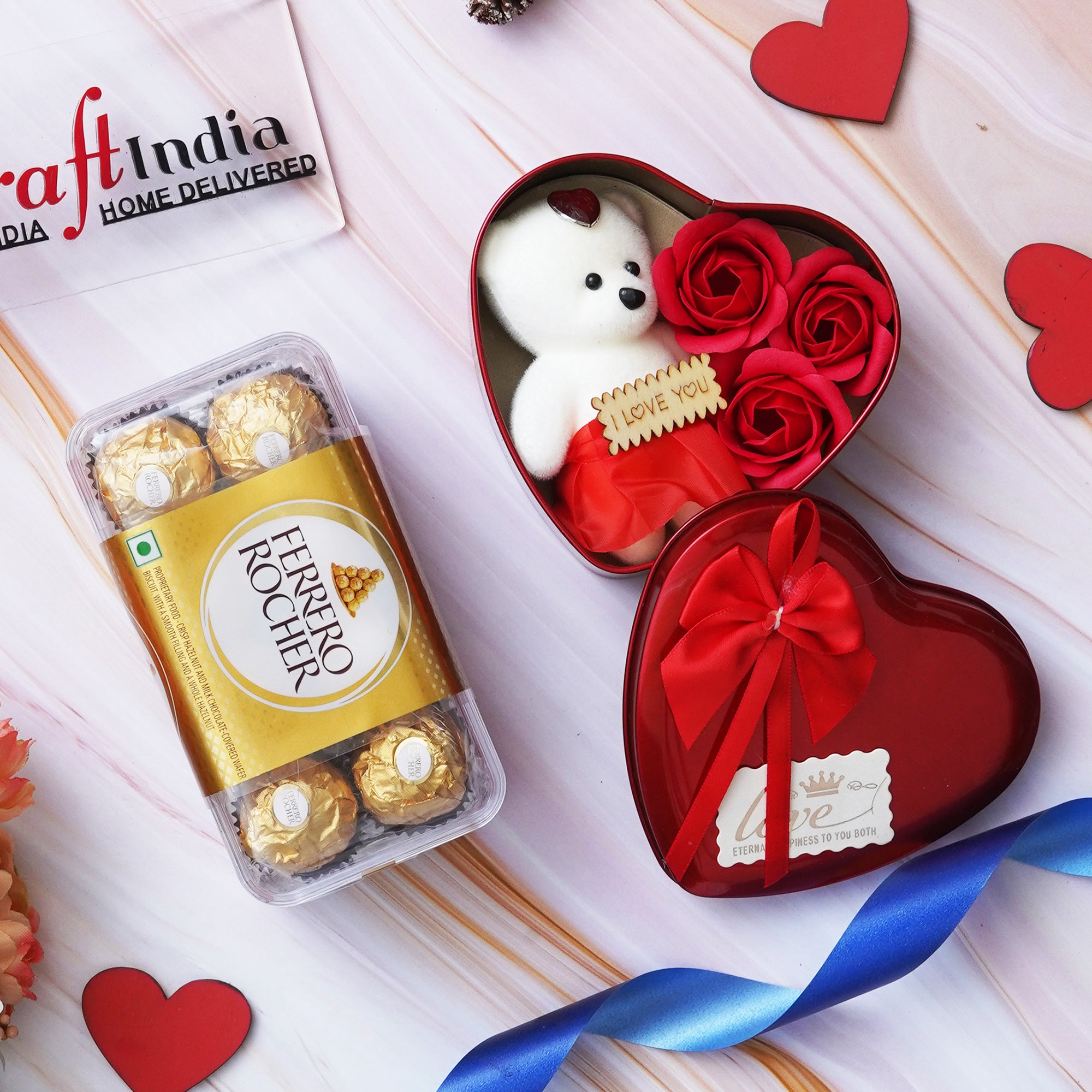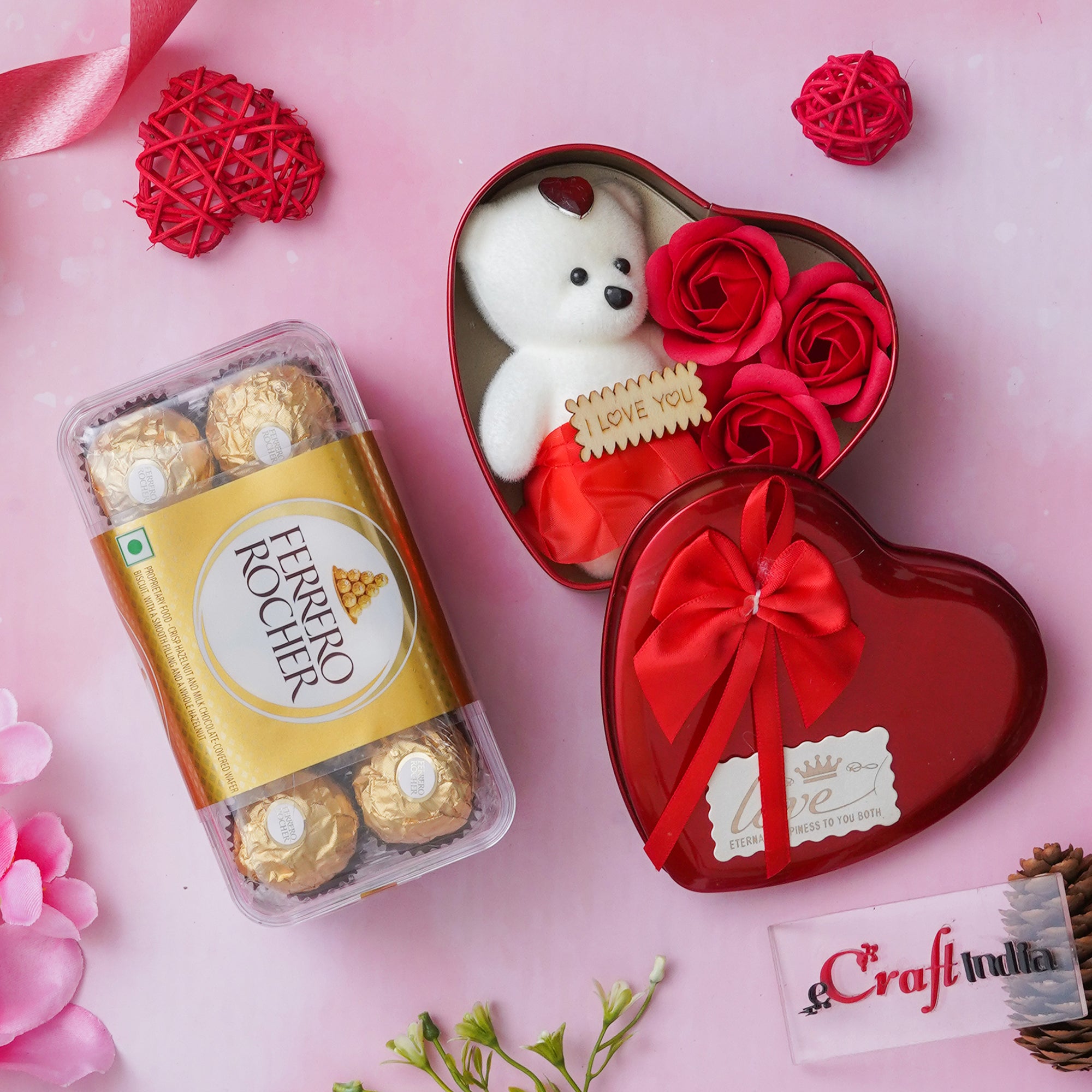 Package Content - One eCraftIndia Heart Shaped Valentine's Day Gift Box & Ferrero Rocher Chocolates