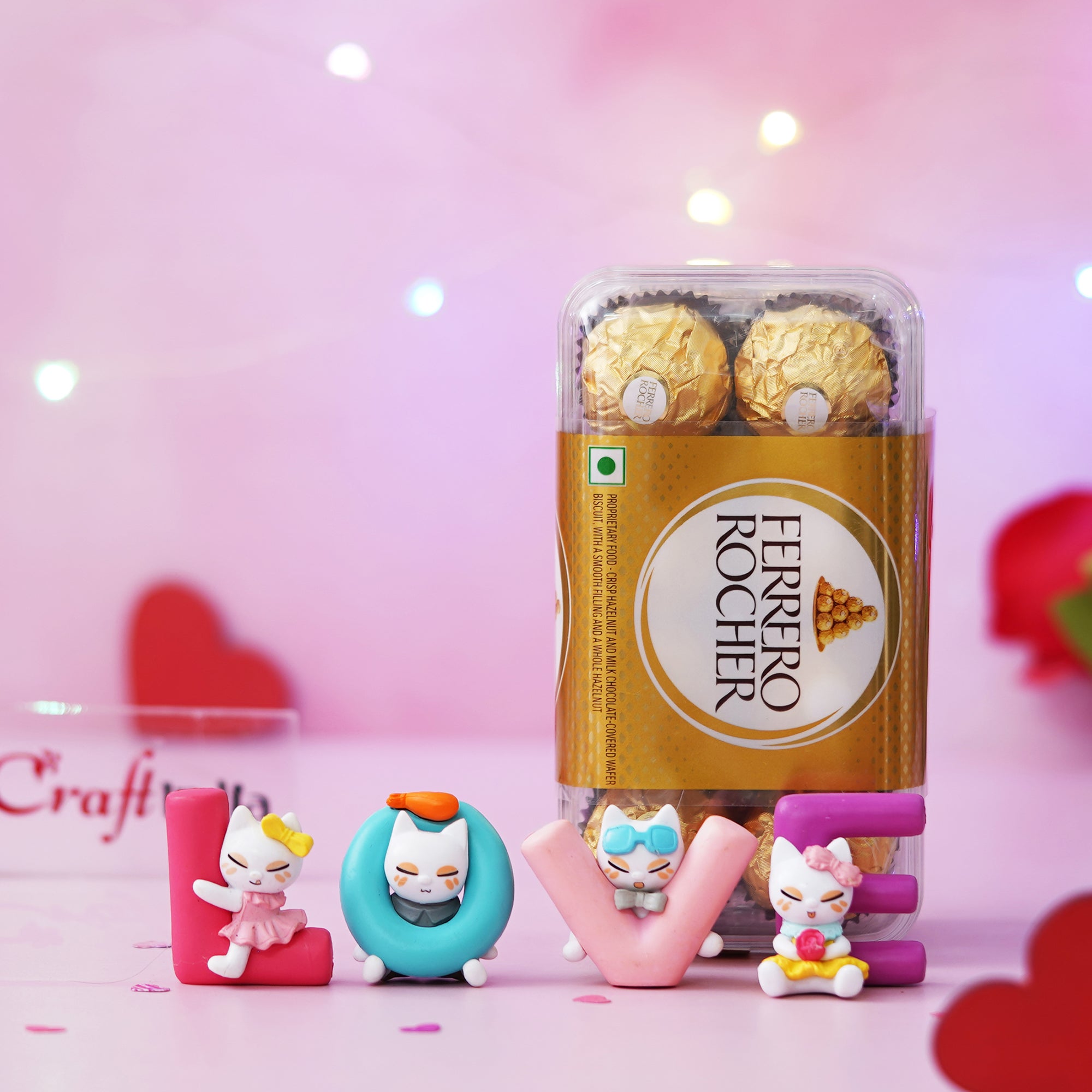 Package Content - One eCraftIndia LOVE Animated Characters Valentine's Day Showpiece & Ferrero Rocher Chocolates