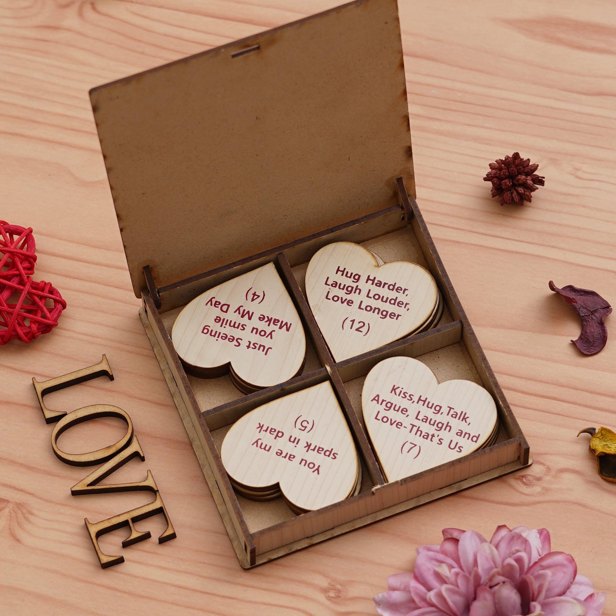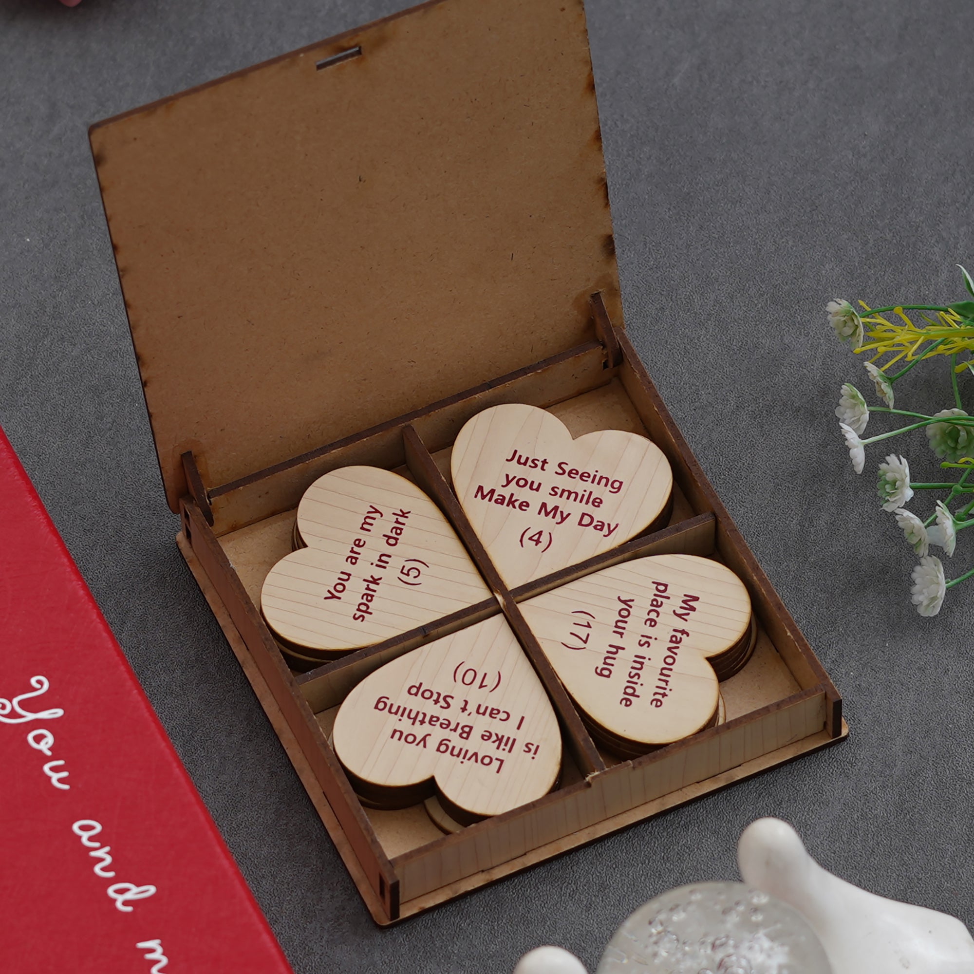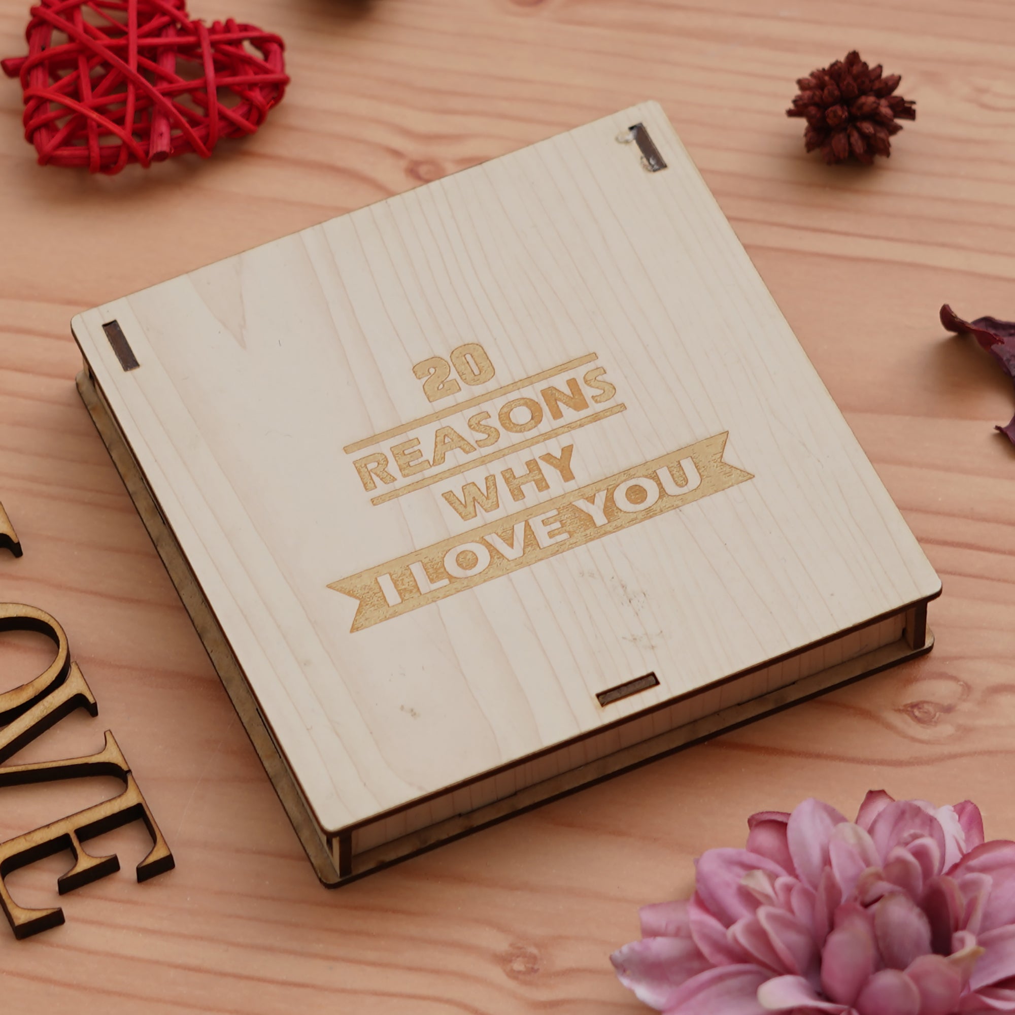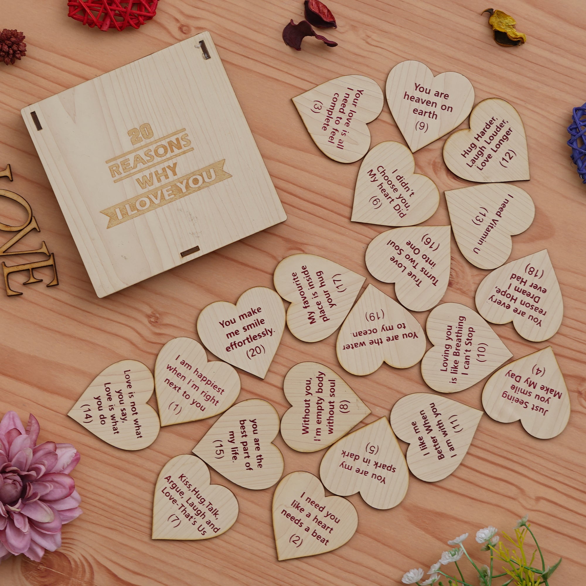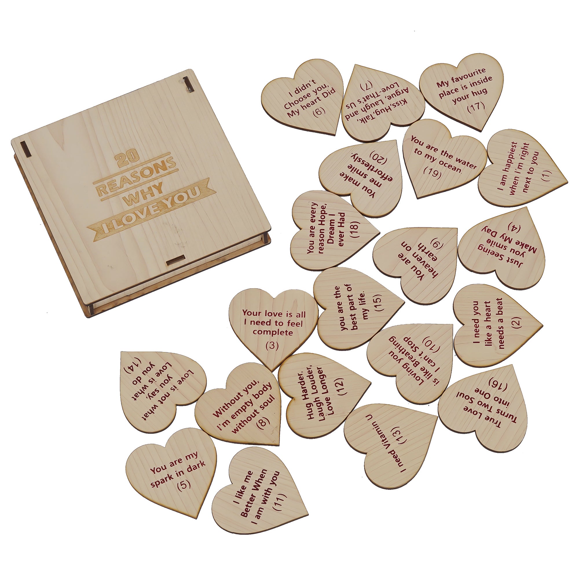 "20 Reasons Why I Love You" Printed on Little Hearts Valentine Brown Wooden Gift Set