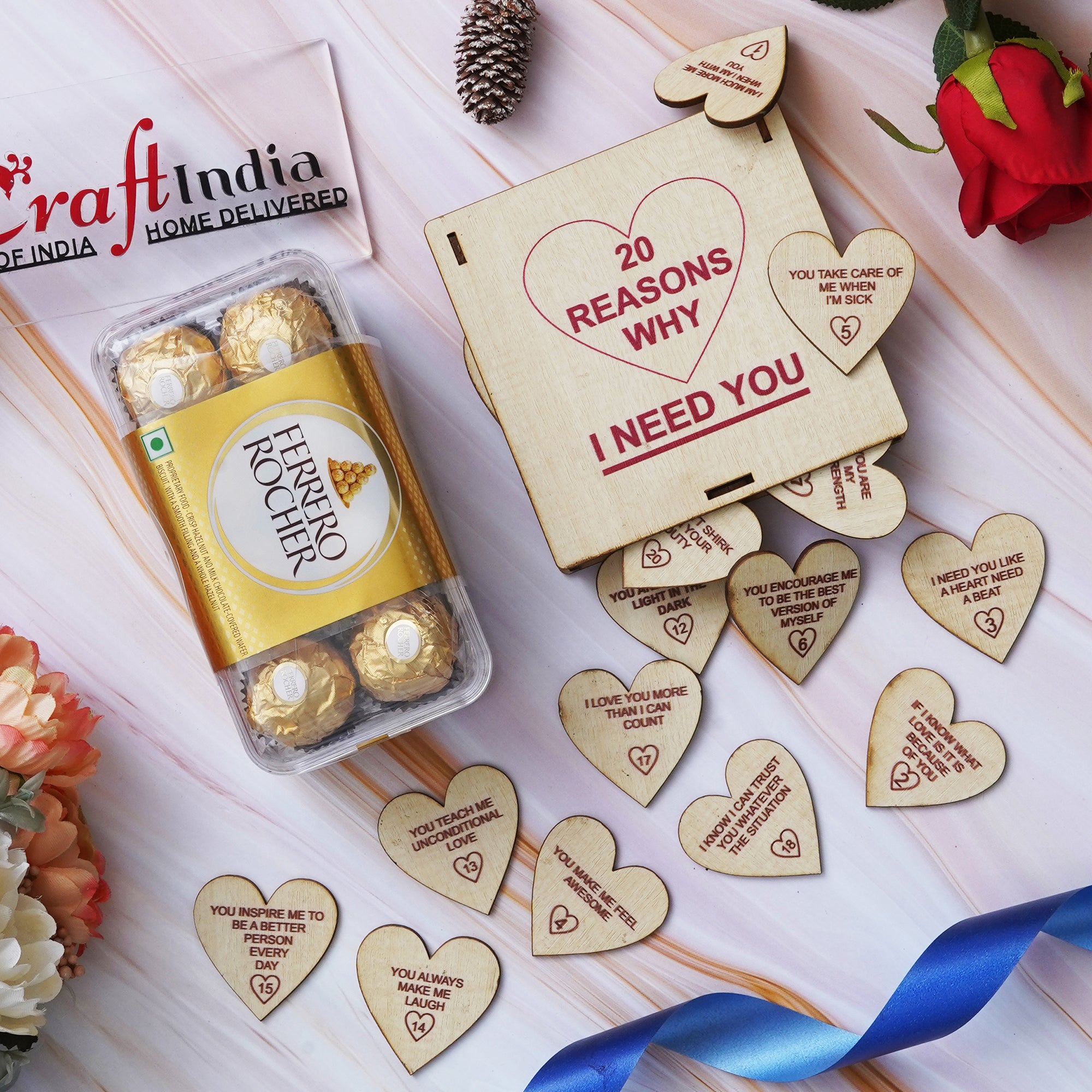Package Content - One eCraftIndia "20 Reasons Why I Need You" Valentine's Day Gift & Ferrero Rocher Chocolates