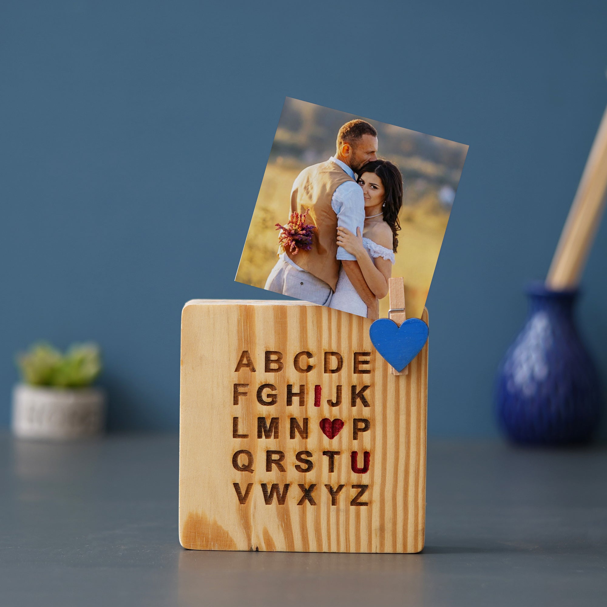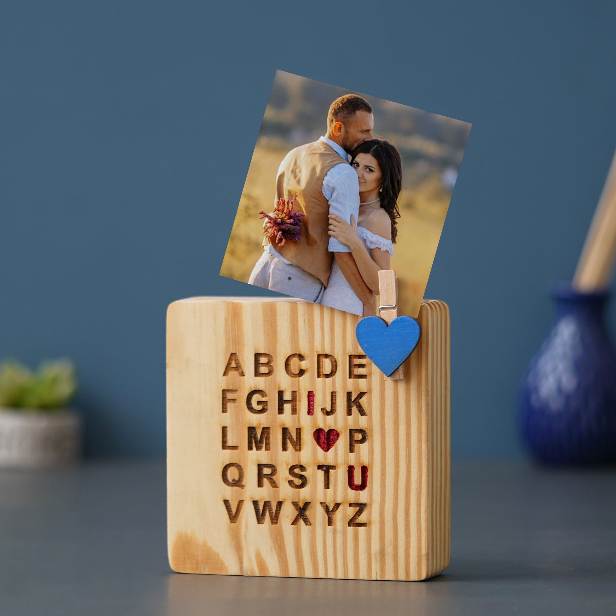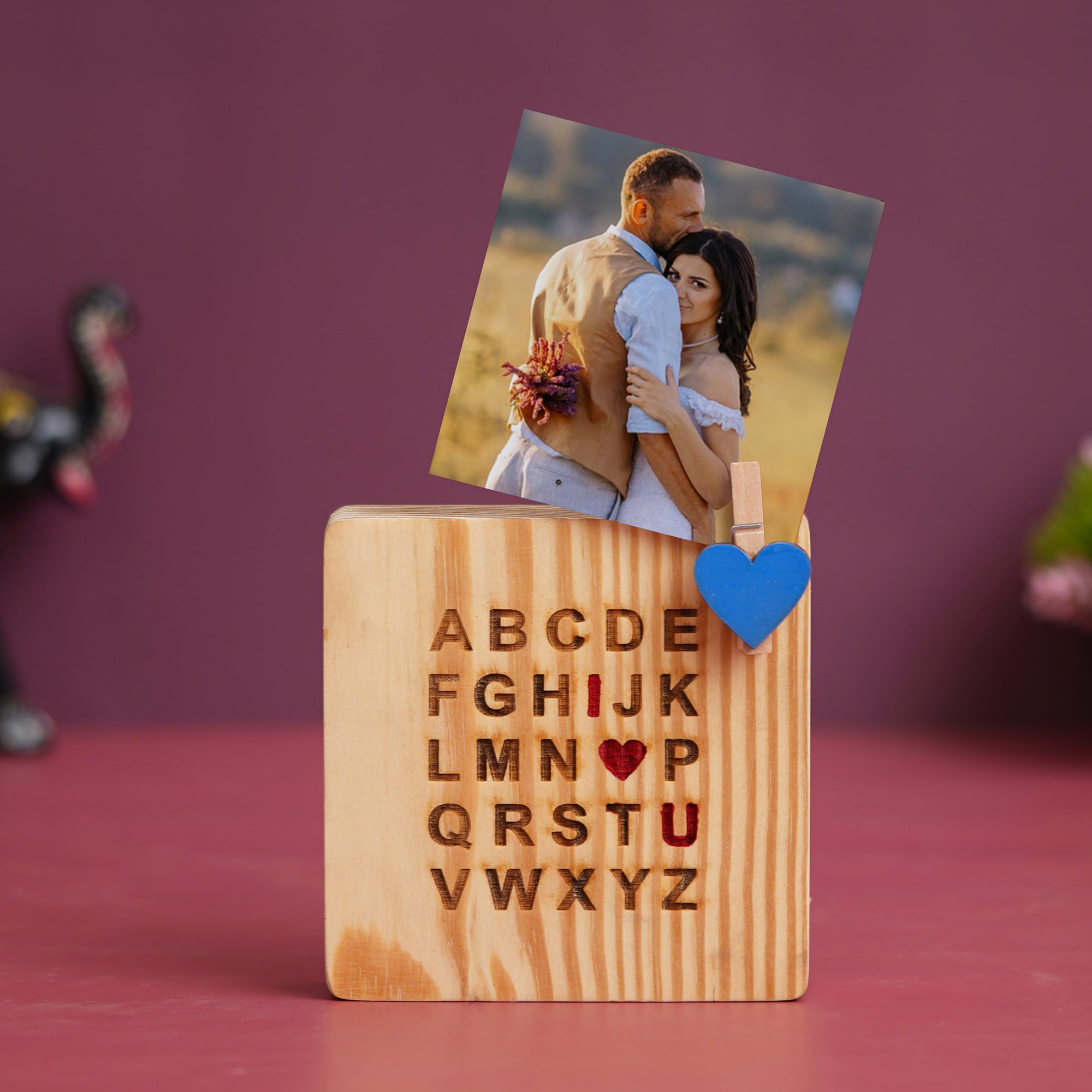 Presenting our exquisite Light Brown "1 Love You" With Blue Heart Personalized Wooden Photo Frame Showpiece, a delightful blend of elegance and sentimentality. Crafted from premium quality light brown wood, this photo frame showcases a charming heart-shaped design with a beautiful blue accent. The highlight of this showpiece is its personalization feature, where you can add a special touch by customizing it with your desired photo. It is the perfect way to showcase your cherished memories, be it with loved ones, friends, or family. With its versatile design, this picture frame can be displayed on shelves, mantels, or desks, adding a touch of warmth and personalization. It also makes a thoughtful gift for birthdays, anniversaries, weddings, or any special occasion, allowing your loved ones to preserve their precious moments in style.
