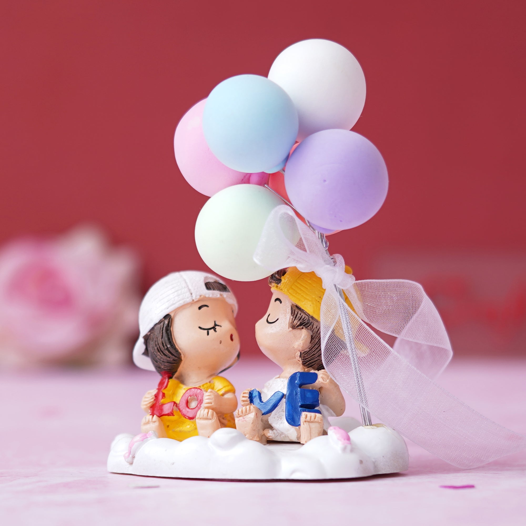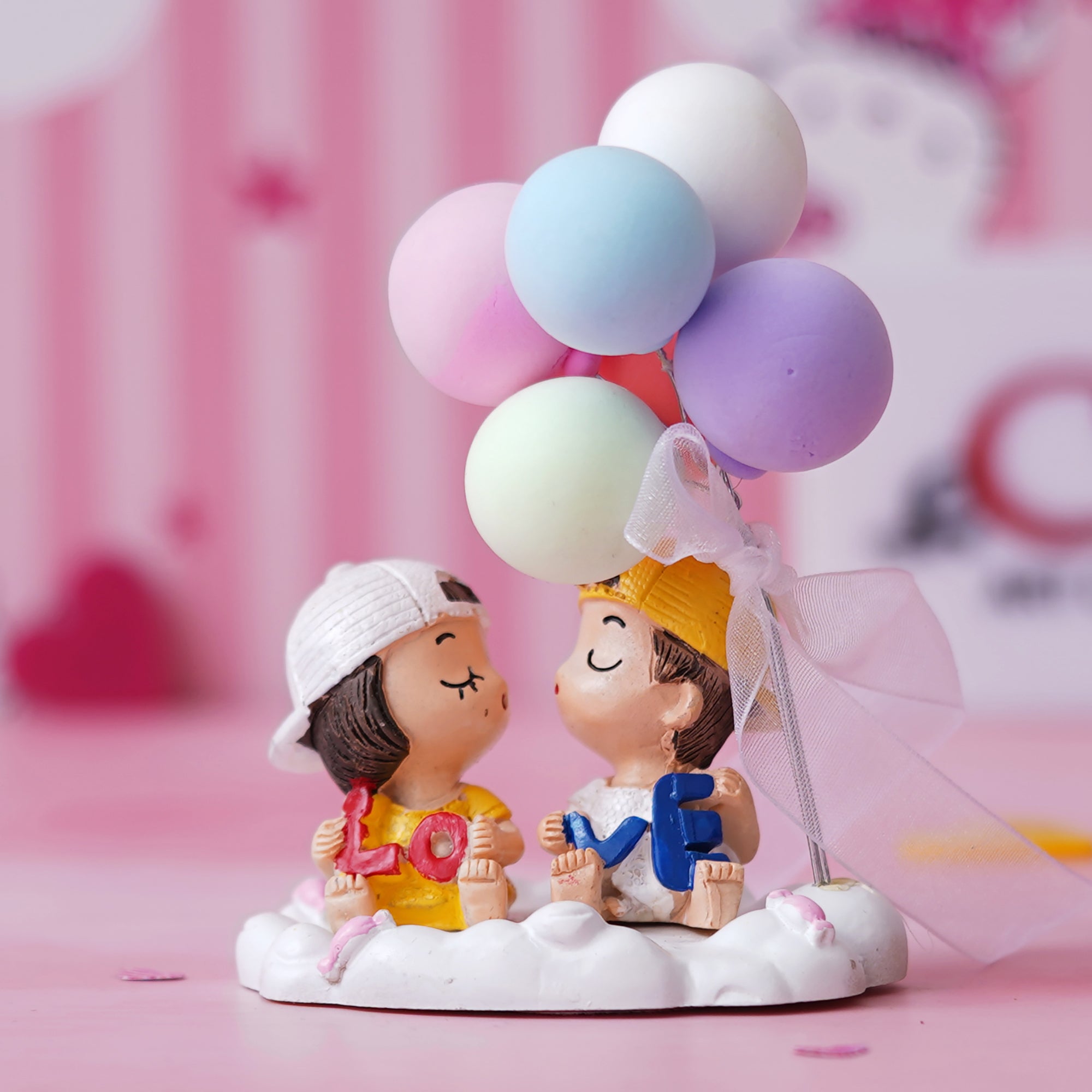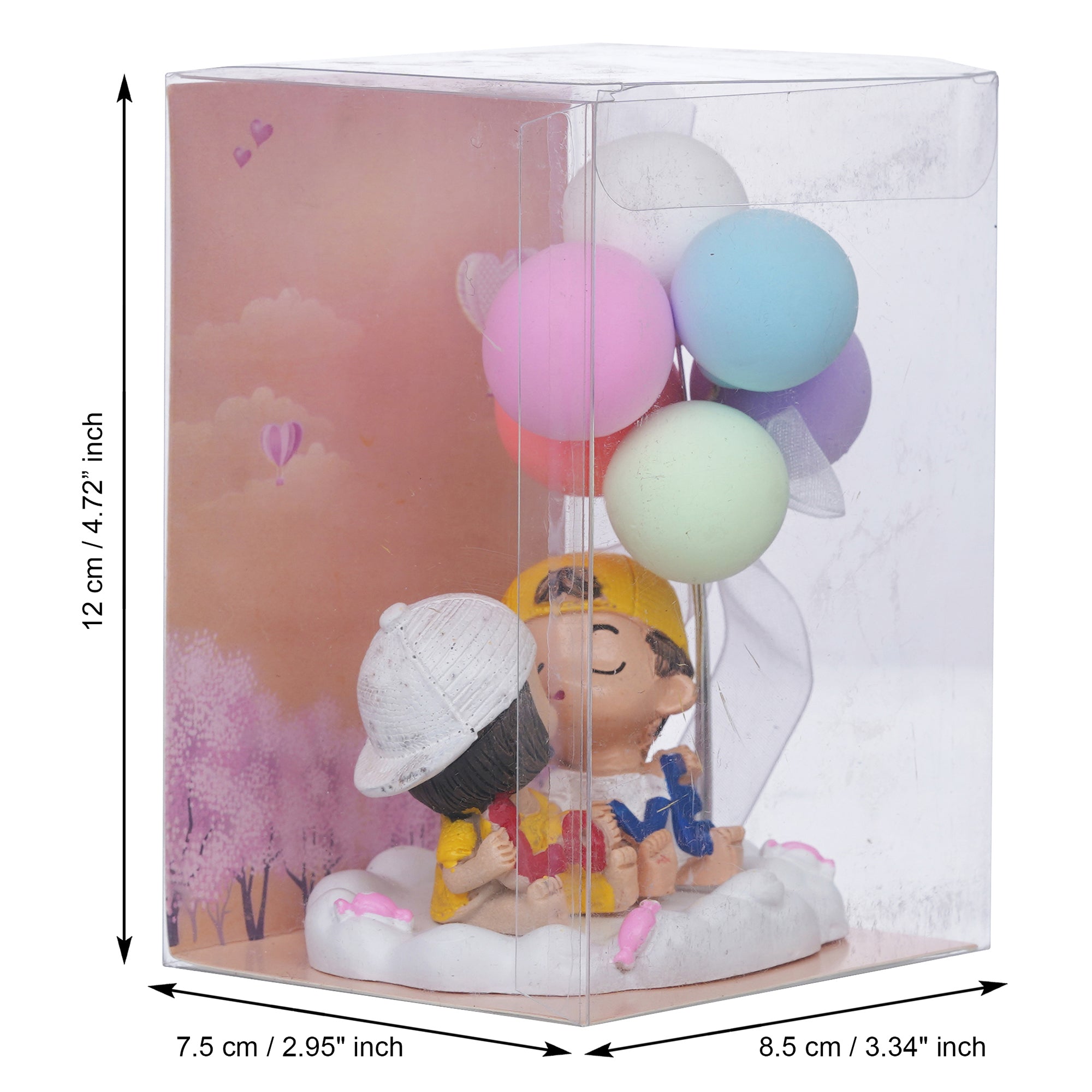 Package Content - One Cute Couple Statue with Balloons Decorative Showpiece