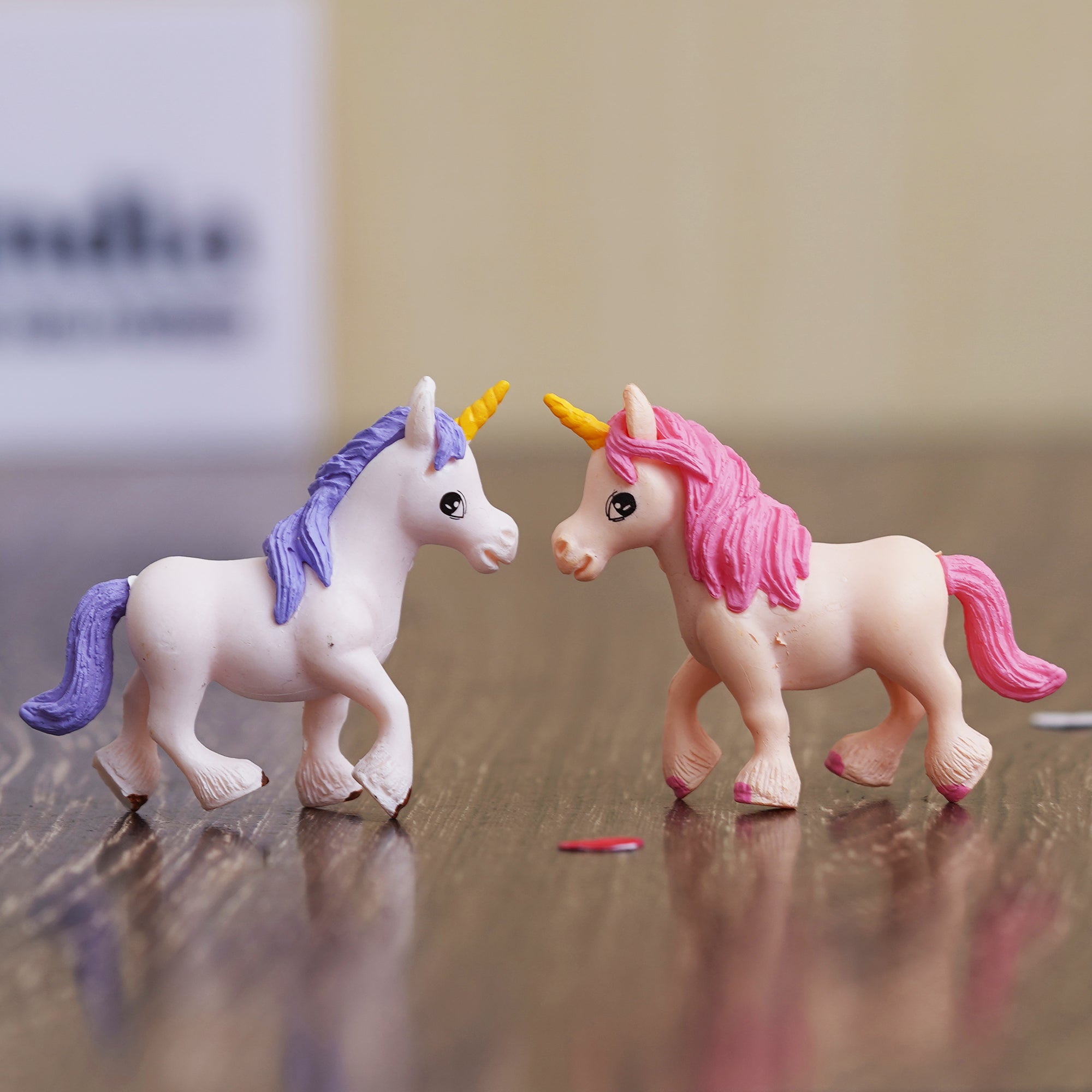 Product Description - Embark on a magical journey with our Set of 2 Miniature Unicorn Horse Statues, charming animal figurines in pink, purple, and white—a perfect decorative showpiece and delightful gifts for kids and girlfriends. Crafted from polyresin, these whimsical unicorns add a touch of fantasy to any space. Ideal for gifting on birthdays or as a cute surprise, these figurines serve as mood-lifters, creating a magical atmosphere. Display them on a shelf or tabletop to infuse your decor with playful charm. Bring joy to your little ones or add a whimsical touch to your girlfriend's space, making every day a magical adventure.