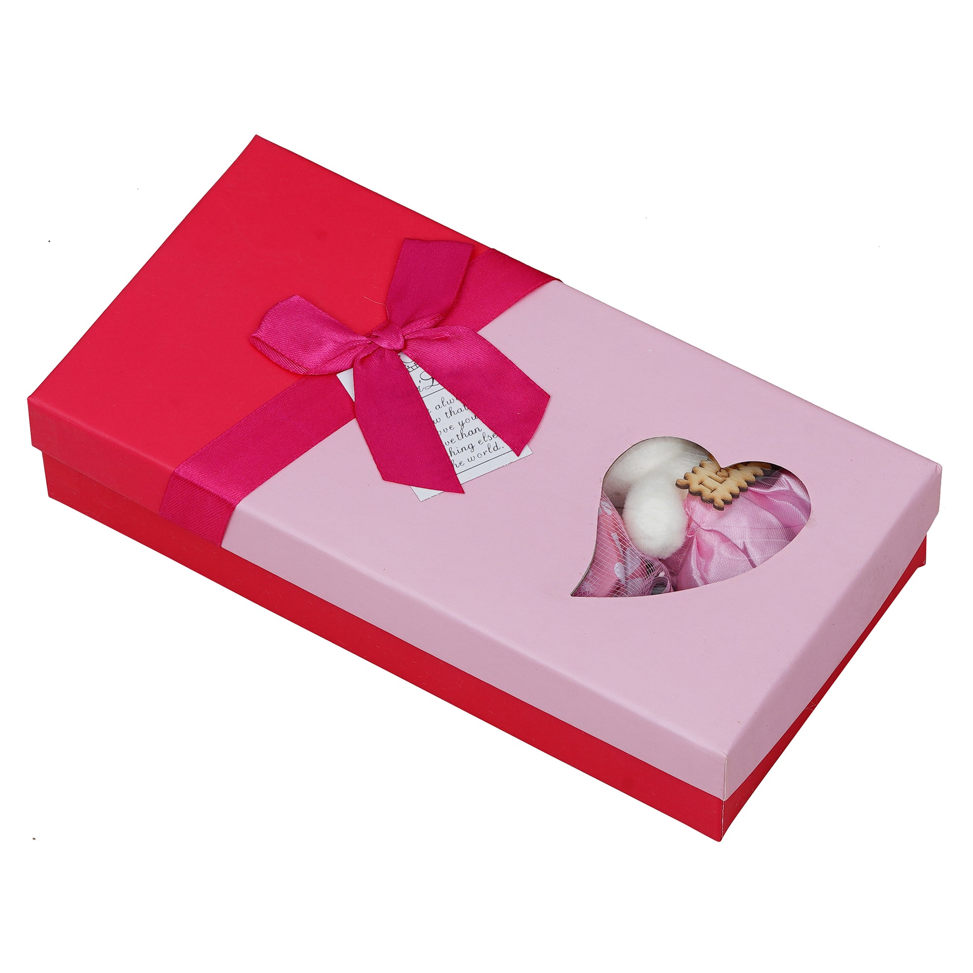 Product Description - This Valentine's day gift your partner "Pink roses bouqet with white & pink teddy bear valentine's square shaped gift box" that is the cutest gift you will come across. This heart shaped gift box consists of 1 pink rose bouquet, and a white & pink teddy bear that comes in a box and a ribbon attached on the top. This gift box makes the most cutest and the most memorable gift when it comes to this day of love. You can discover many varieties of gift boxes as well.