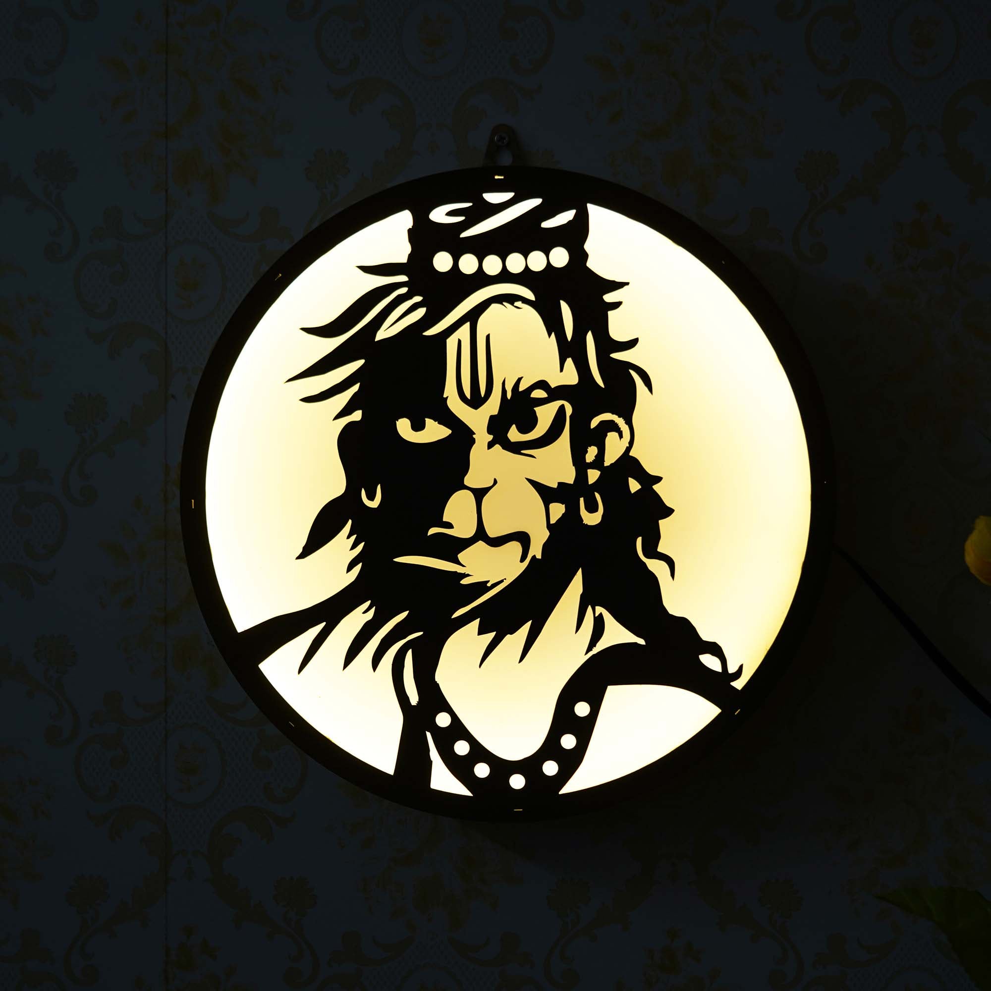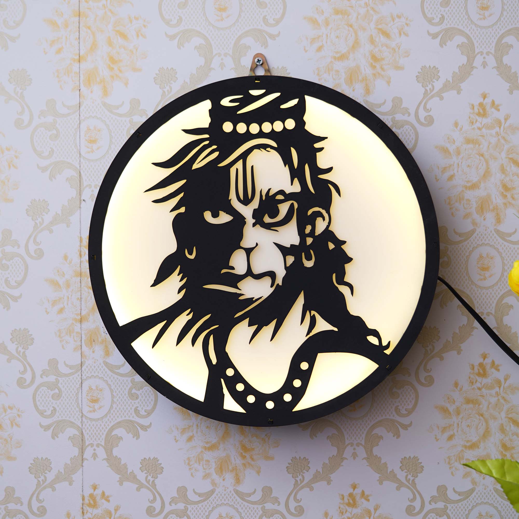 Product Description - Illuminate your space with the strength and blessings of our Lord Hanuman Wooden Cutout LED Light Lamp. Handcrafted for enduring beauty, this elegant piece adds a touch of divinity to any room, from the living area to the prayer room. Crafted from durable materials, it emits a gentle glow, perfect for creating a serene ambiance. Whether it's for Hanuman Jayanti, birthdays, or as a thoughtful housewarming gift, this symbolic lamp brings blessings and positivity to any occasion. Elevate your decor with this spiritual accent, spreading joy and enlightenment to your home or the homes of loved ones.