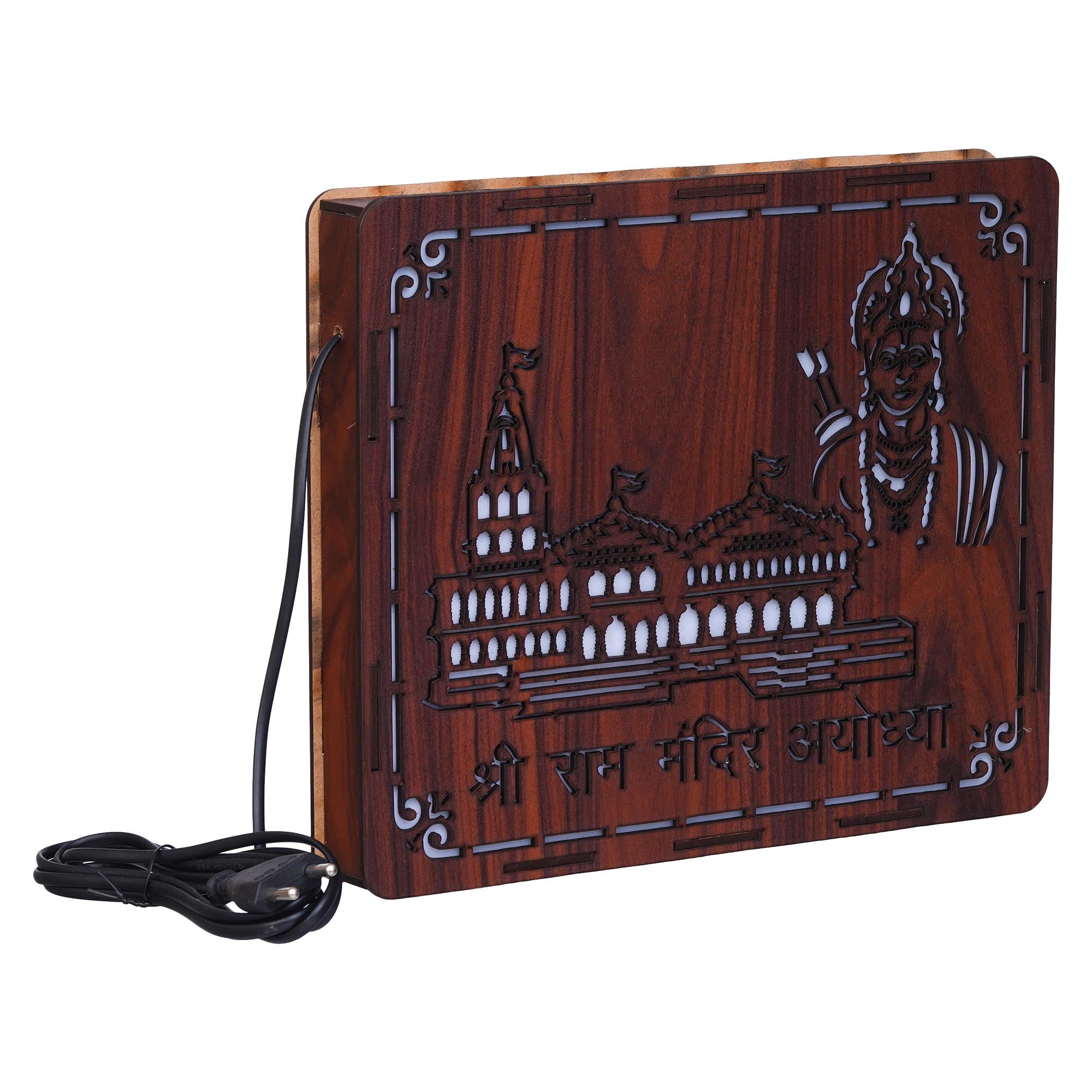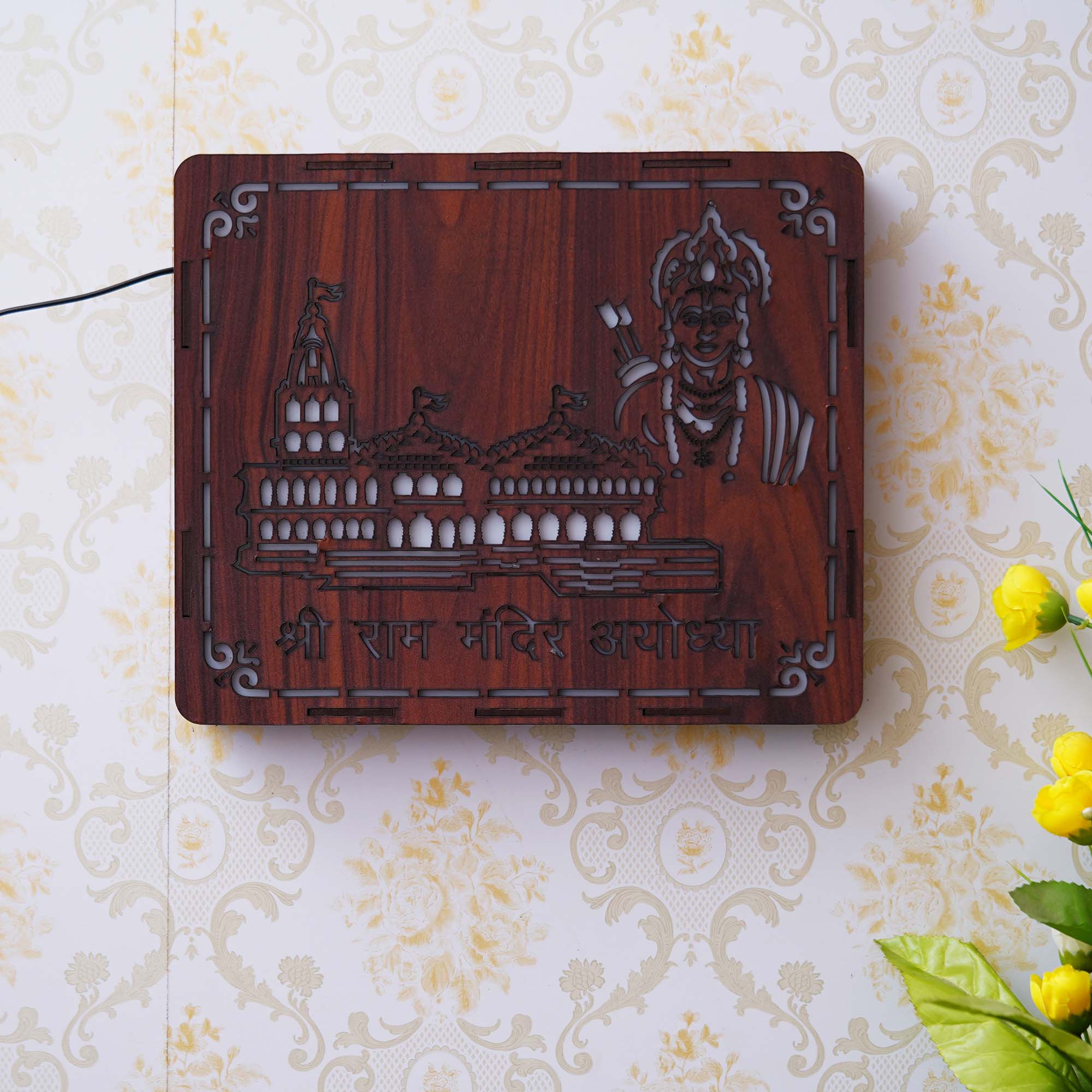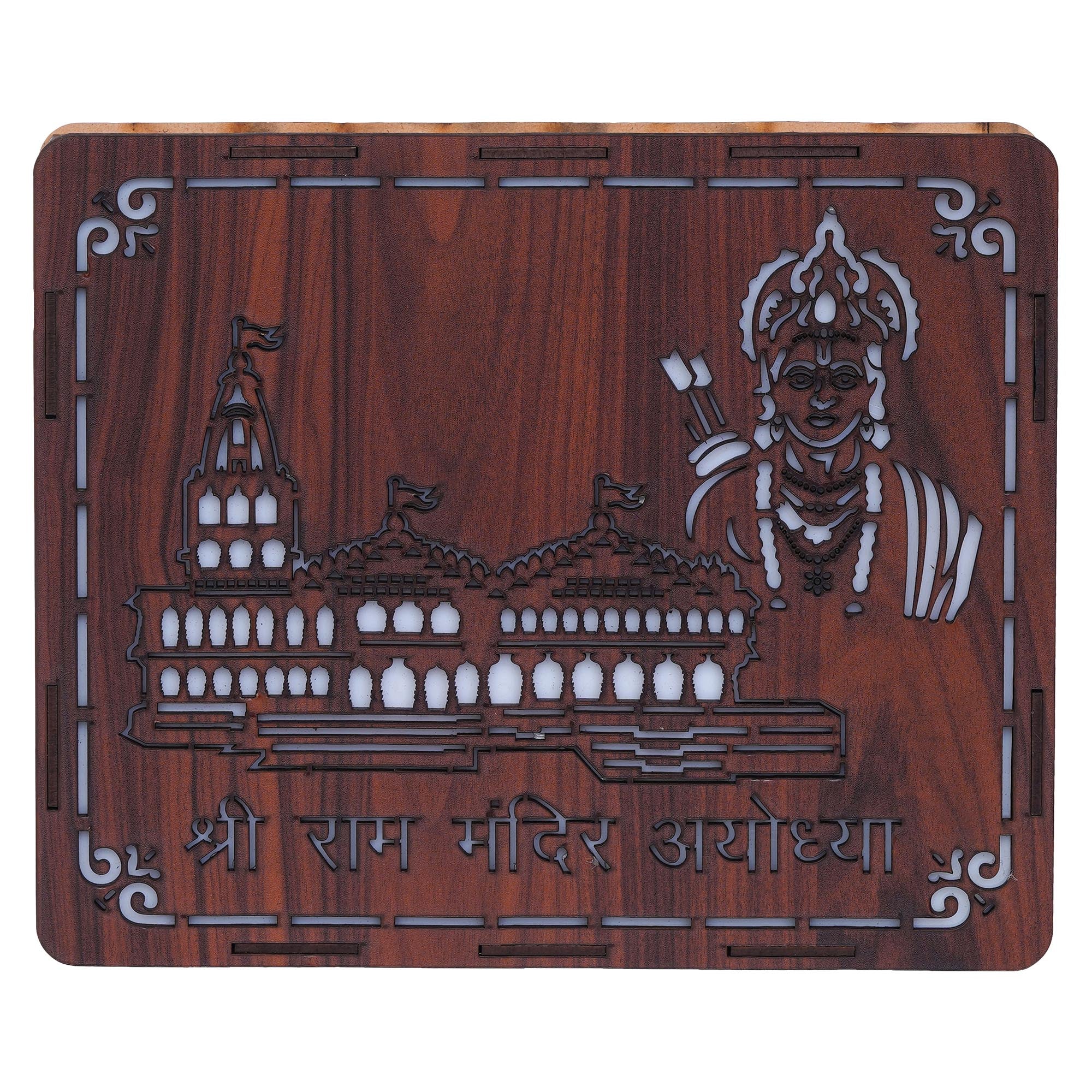Package Content - One Brown Shri Ram Mandir Ayodhya, Jai Shree Ram Wooden Wall Hanging Frame