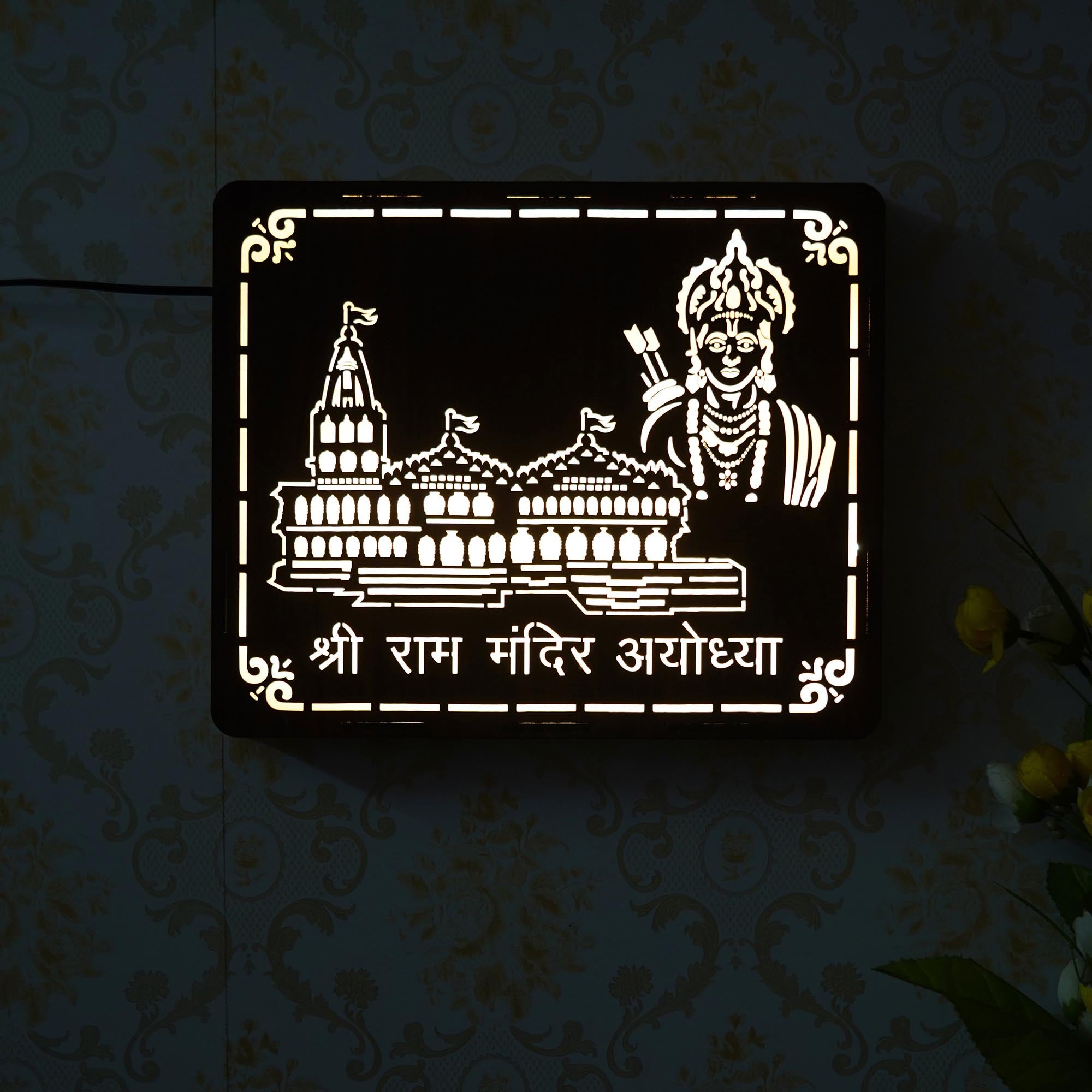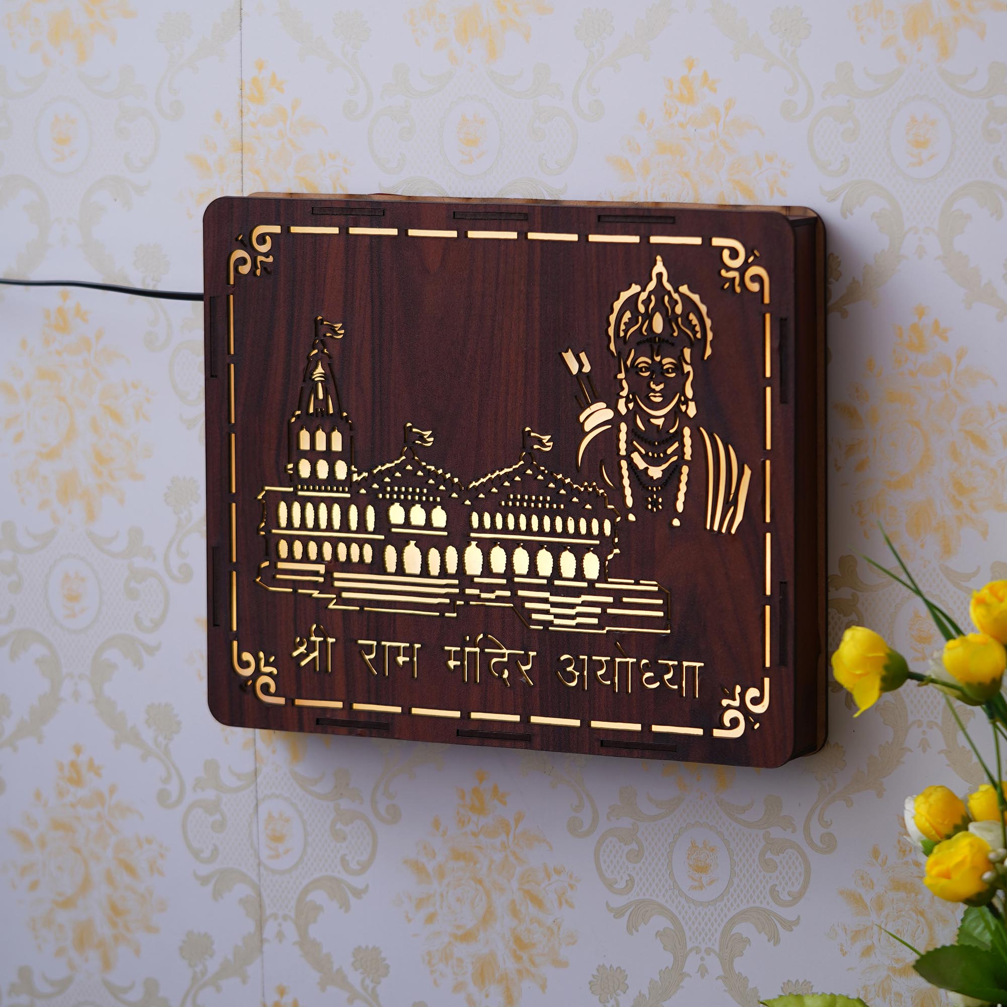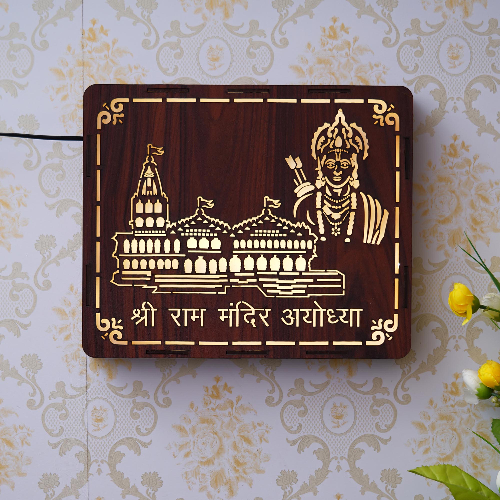 Package Content - One Brown Shri Ram Mandir Ayodhya, Jai Shree Ram Wooden Wall Hanging Frame