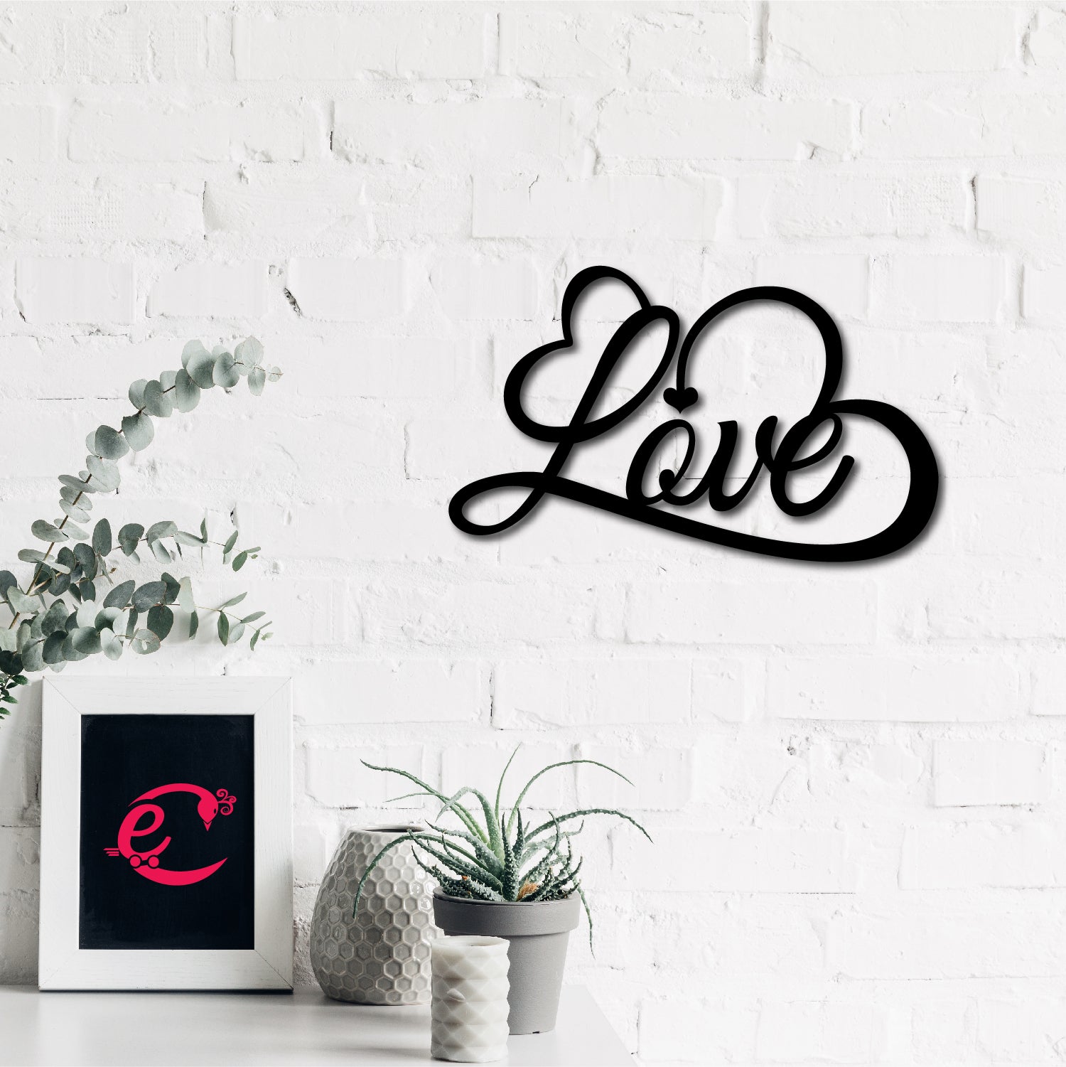 Package Content - One "Love with Hearts" Black Engineered Wood Wall Art Cutout, Ready to Hang Home Decor