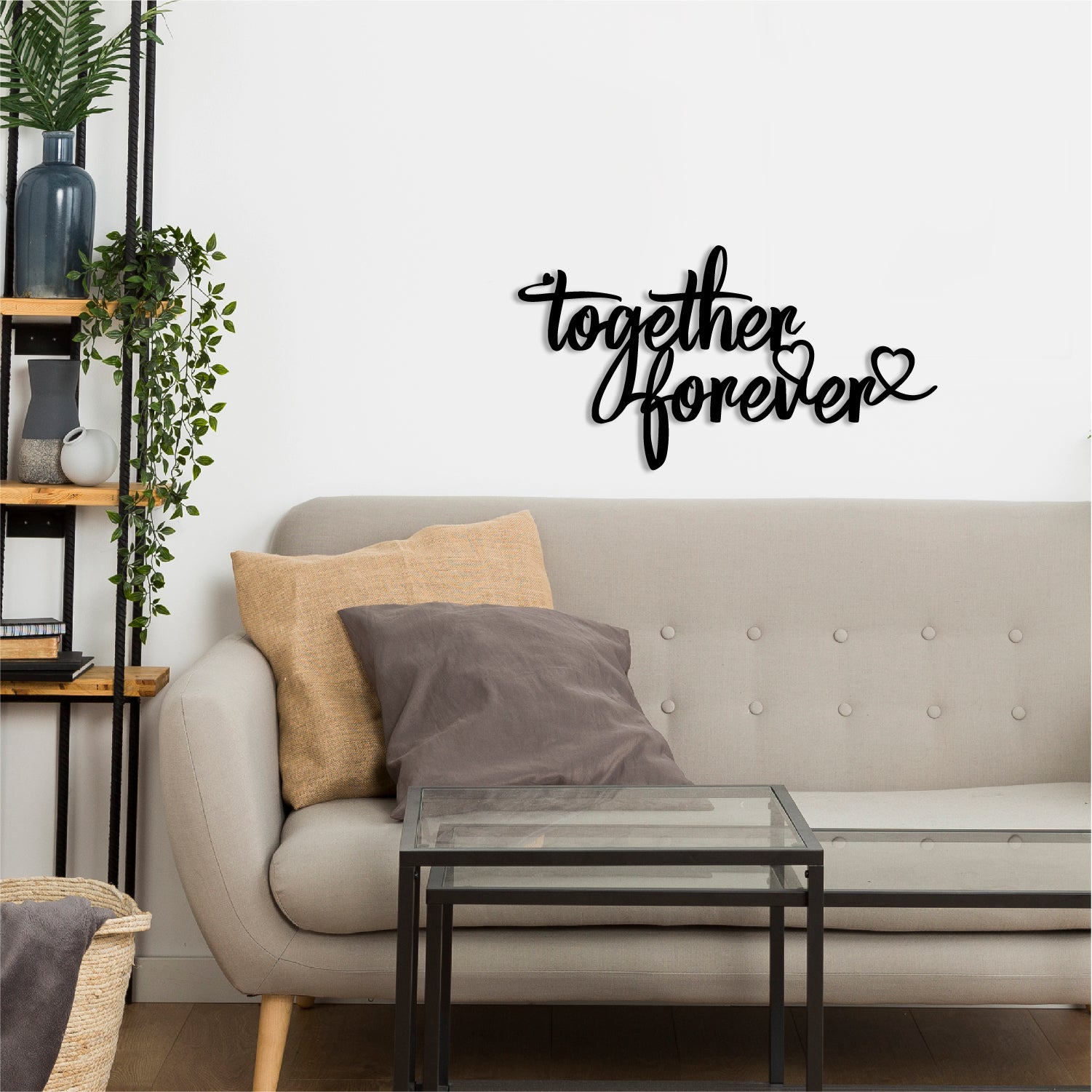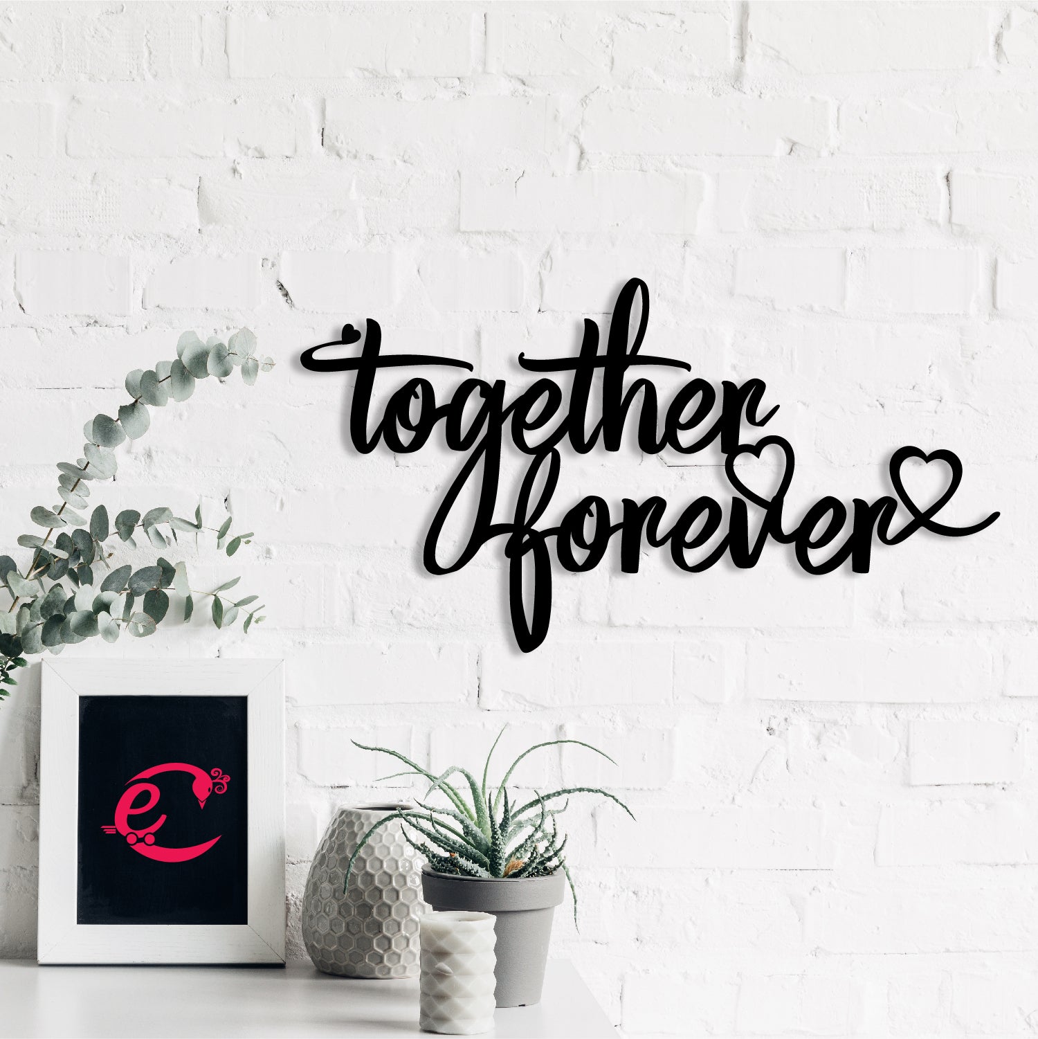 Package Content - One "Together Forever" Love Theme Black Engineered Wood Wall Art Cutout, Ready to Hang Home Decor