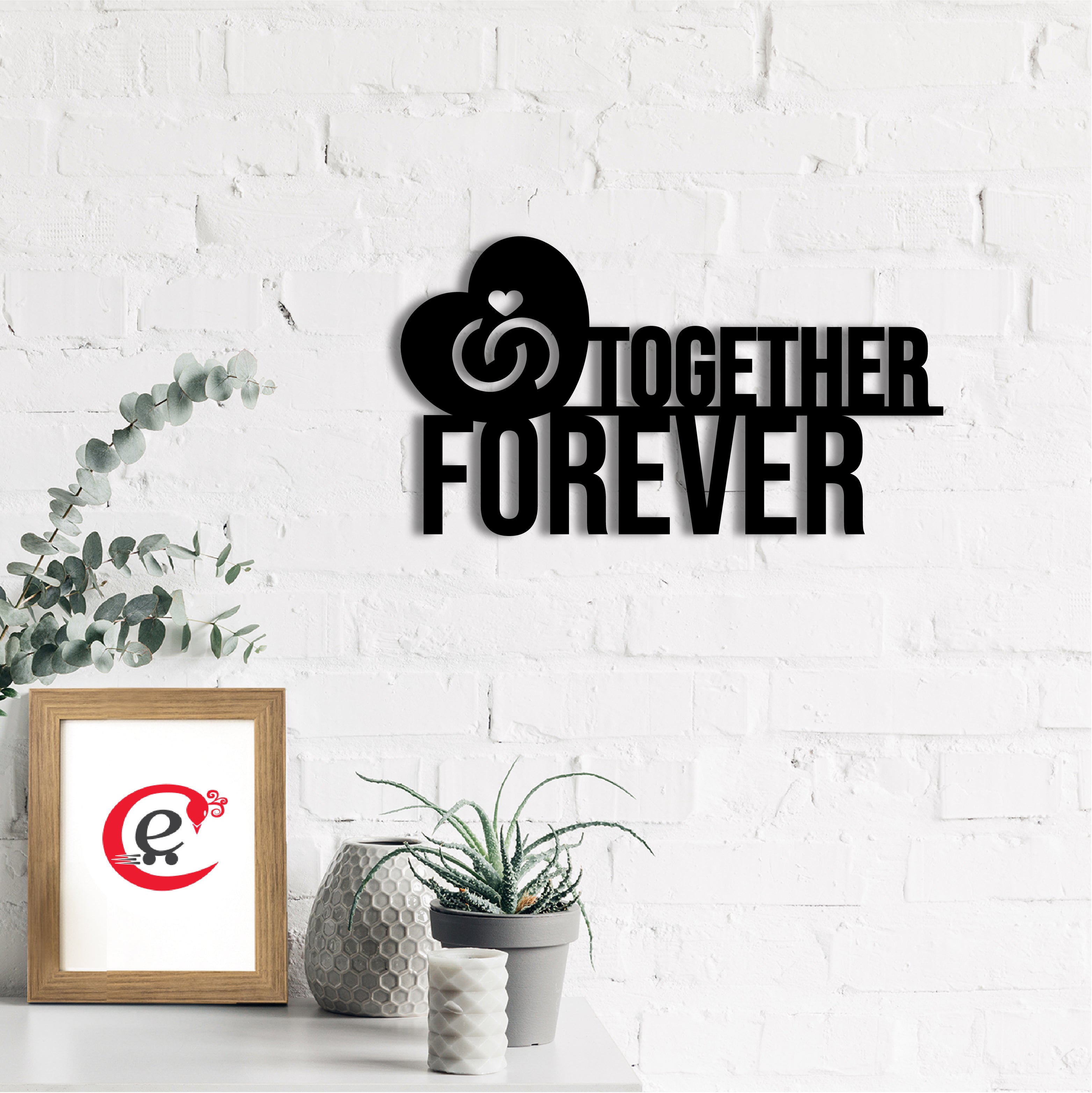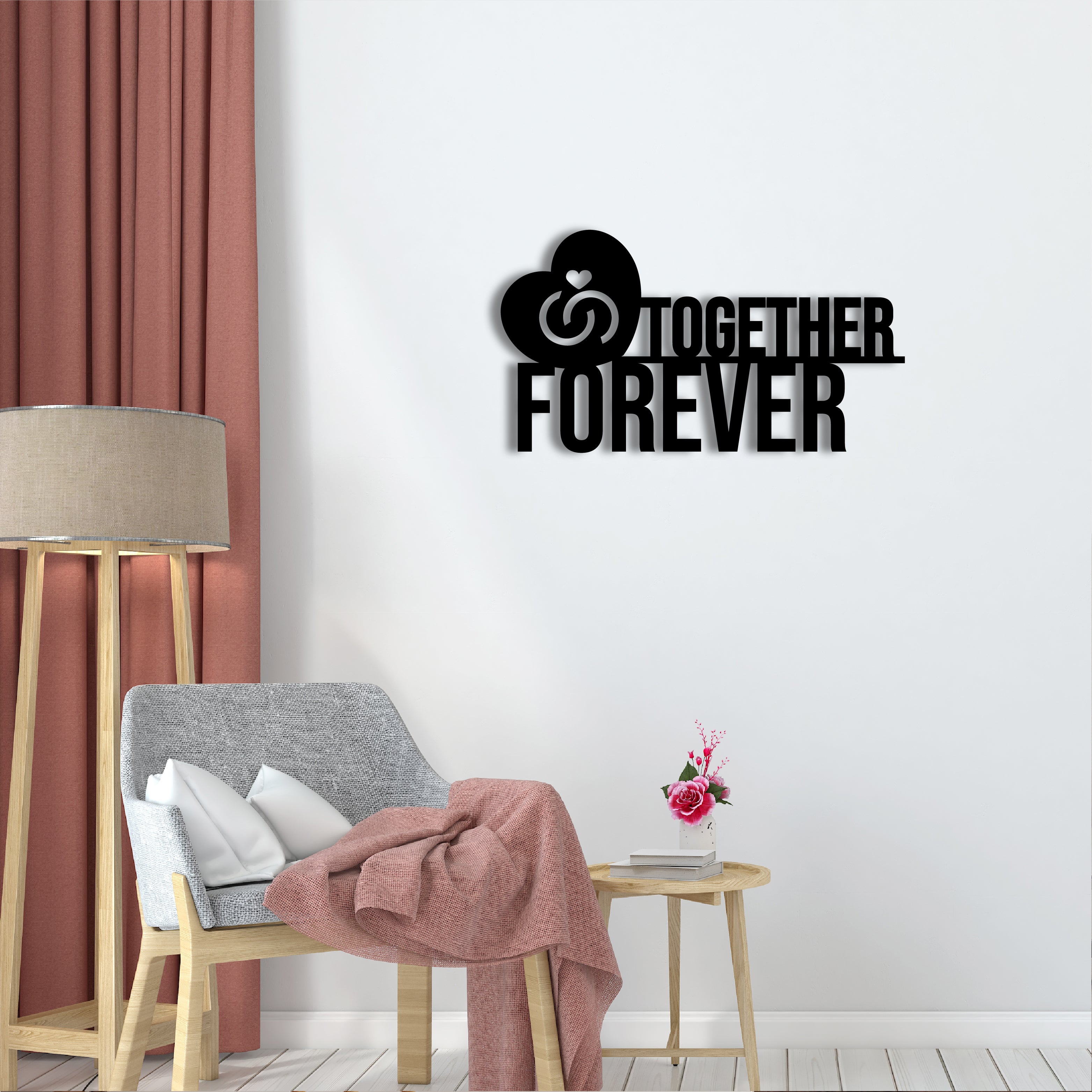 Package Content - One "Together Forever with Love band" Black Engineered Wood Wall Art Cutout, Ready to Hang Home Decor
