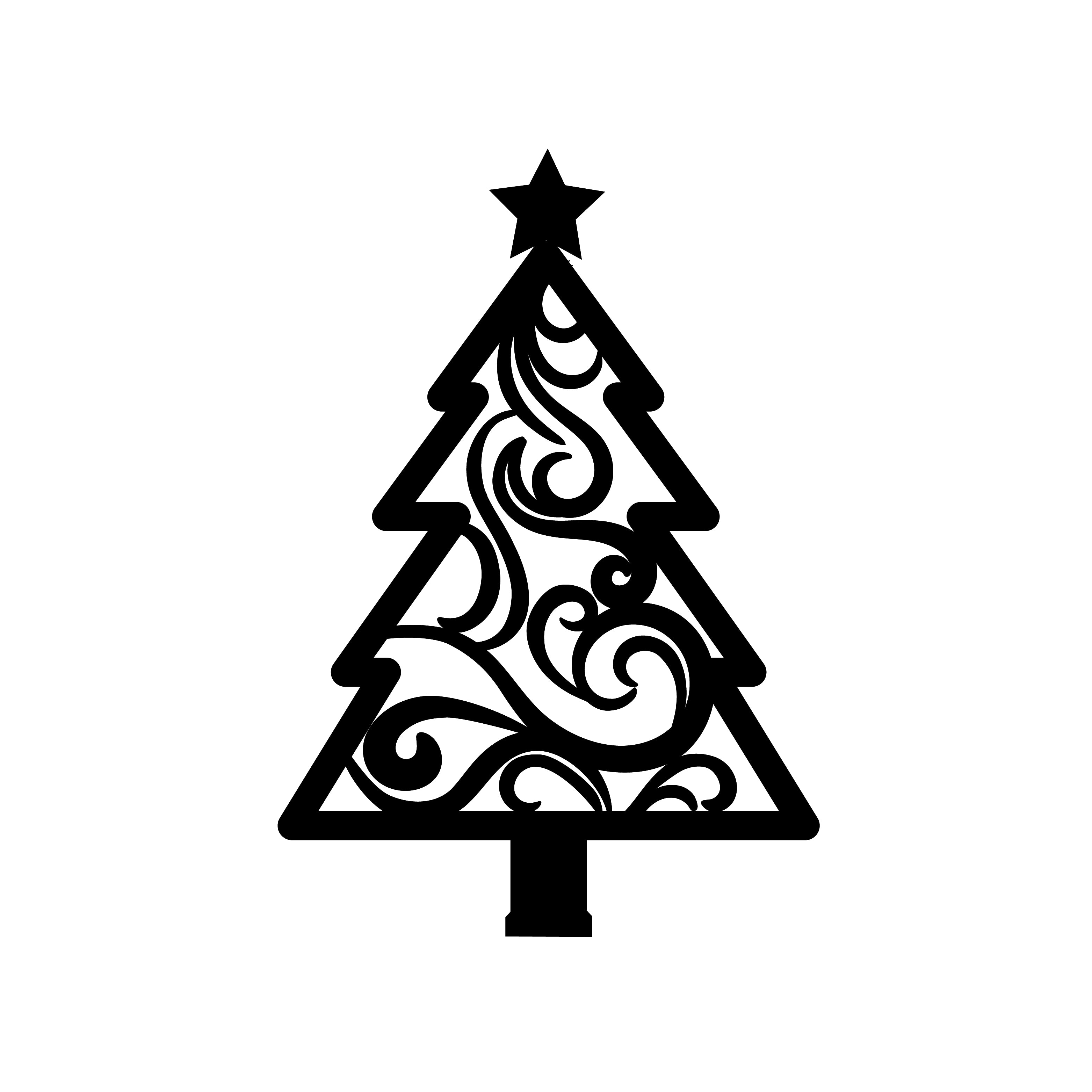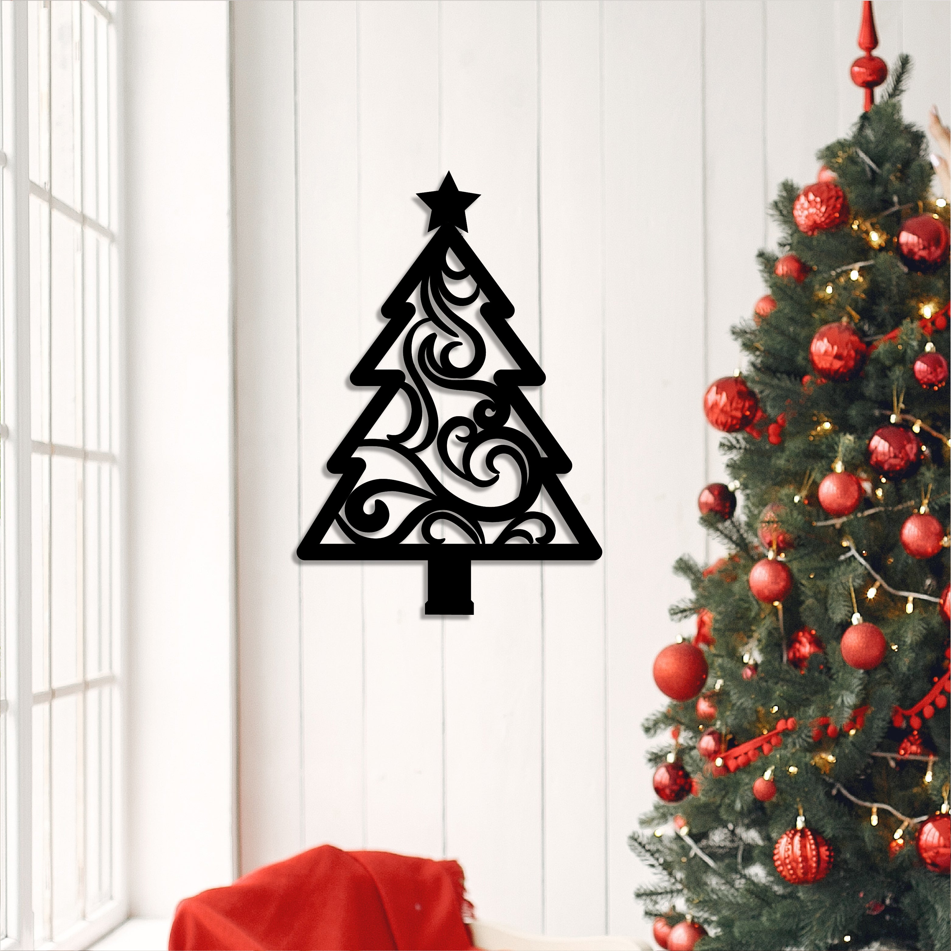 Package Content - One "Christmas Tree" Black Engineered Wood Wall Art Cutout, Ready to Hang Home Decor