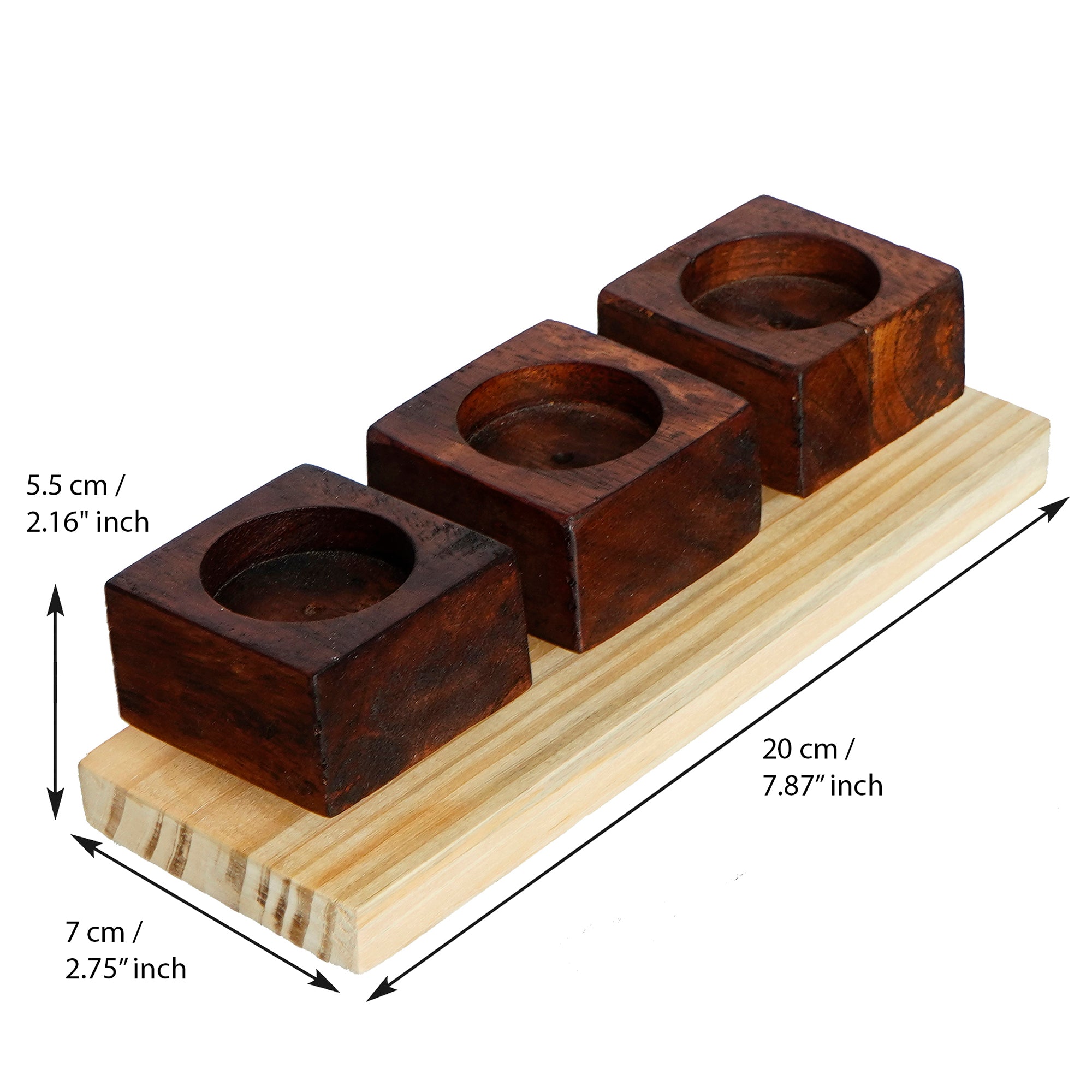 Package Content - One Set of 3 Wooden Tea Light Candle Stand
